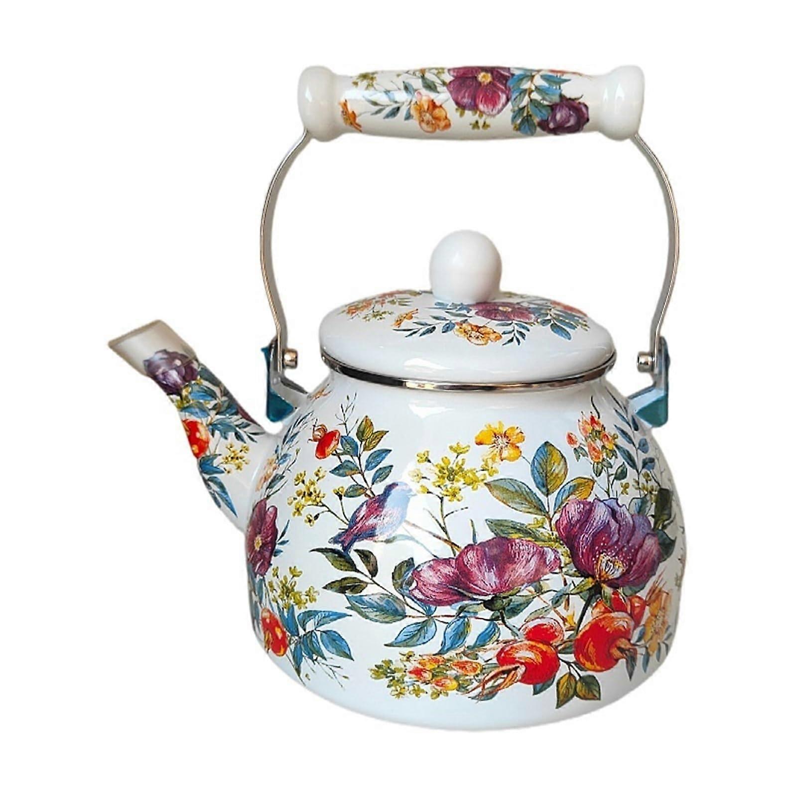 2.5L Vintage Floral Teapot Stovetop Compatible Colorful Hot Water Kettle For Kitchen Decor