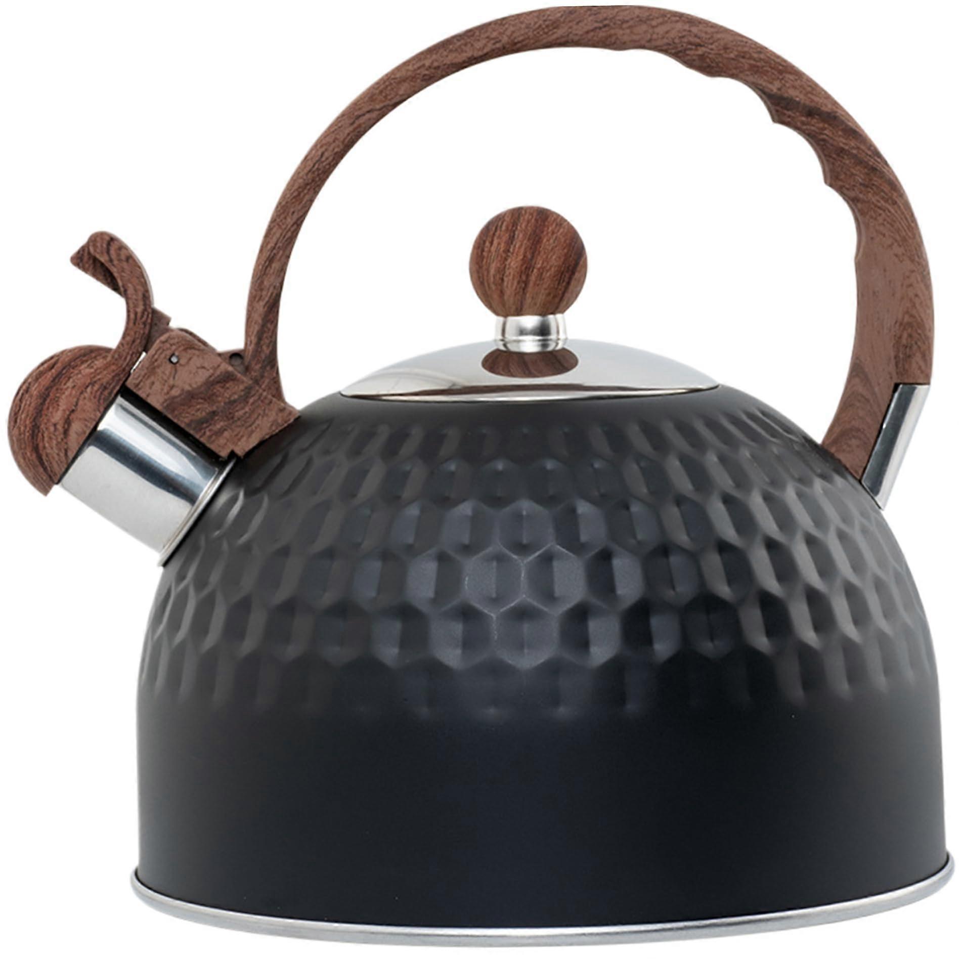 Tea Kettle Stovetop 2.5L Hammered Stainless Steel Wood Handle Whistling Induction Compatible