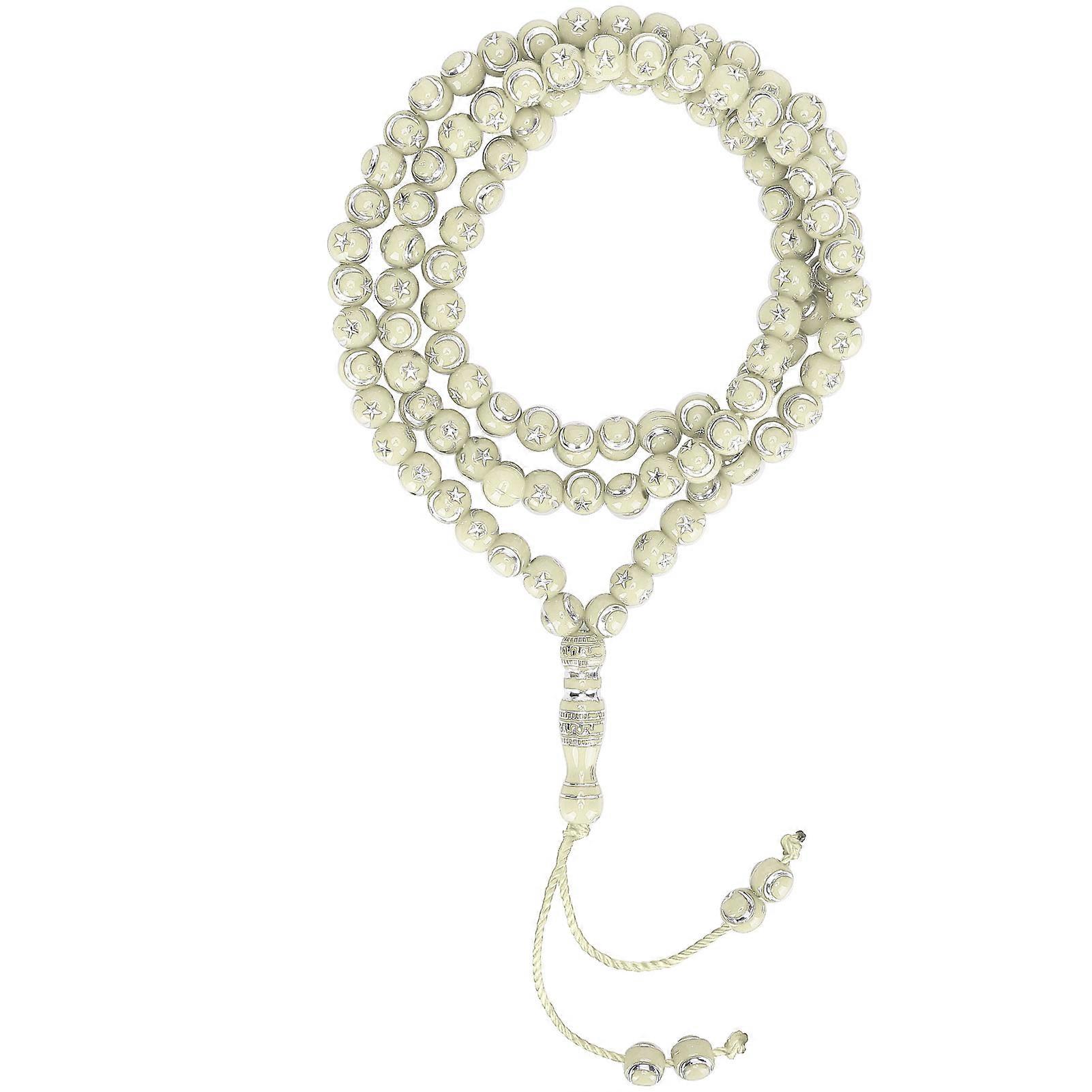 Muslim Rosary Beads 99 Grains Islamic Prayer Tool Resin Gilding Religious Tasbih Subha for Worship and Meditation Beige