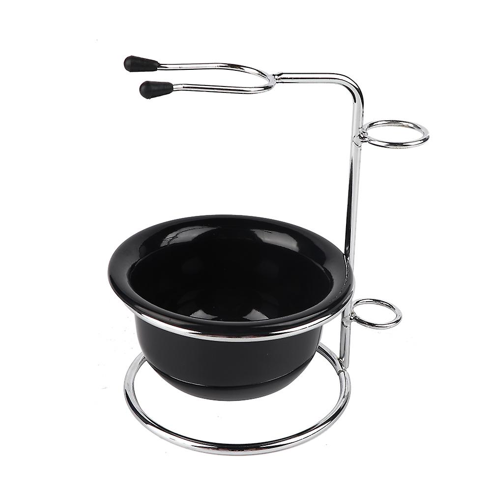 Stainless Steel Shaving Brush Stand and Razor Holder with Black Shaving Bowl for Bathroom Grooming Set