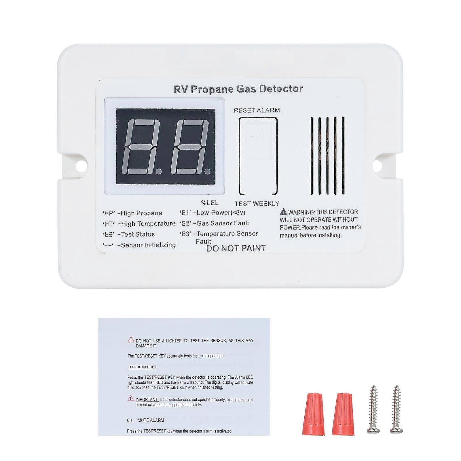 Digital Propane Gas Detector for RV Trailer Motorhome with 85dB Loud Alarm DC 12V Compact White Gas Leak Sensor