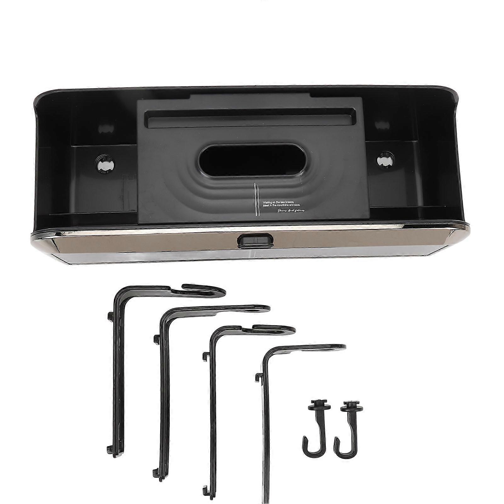 Car Back Seat Organizer with Tray and 2 Drink Cup Holders, Tissue Box Storage, Multi Functional Headrest Hook Organizer Black