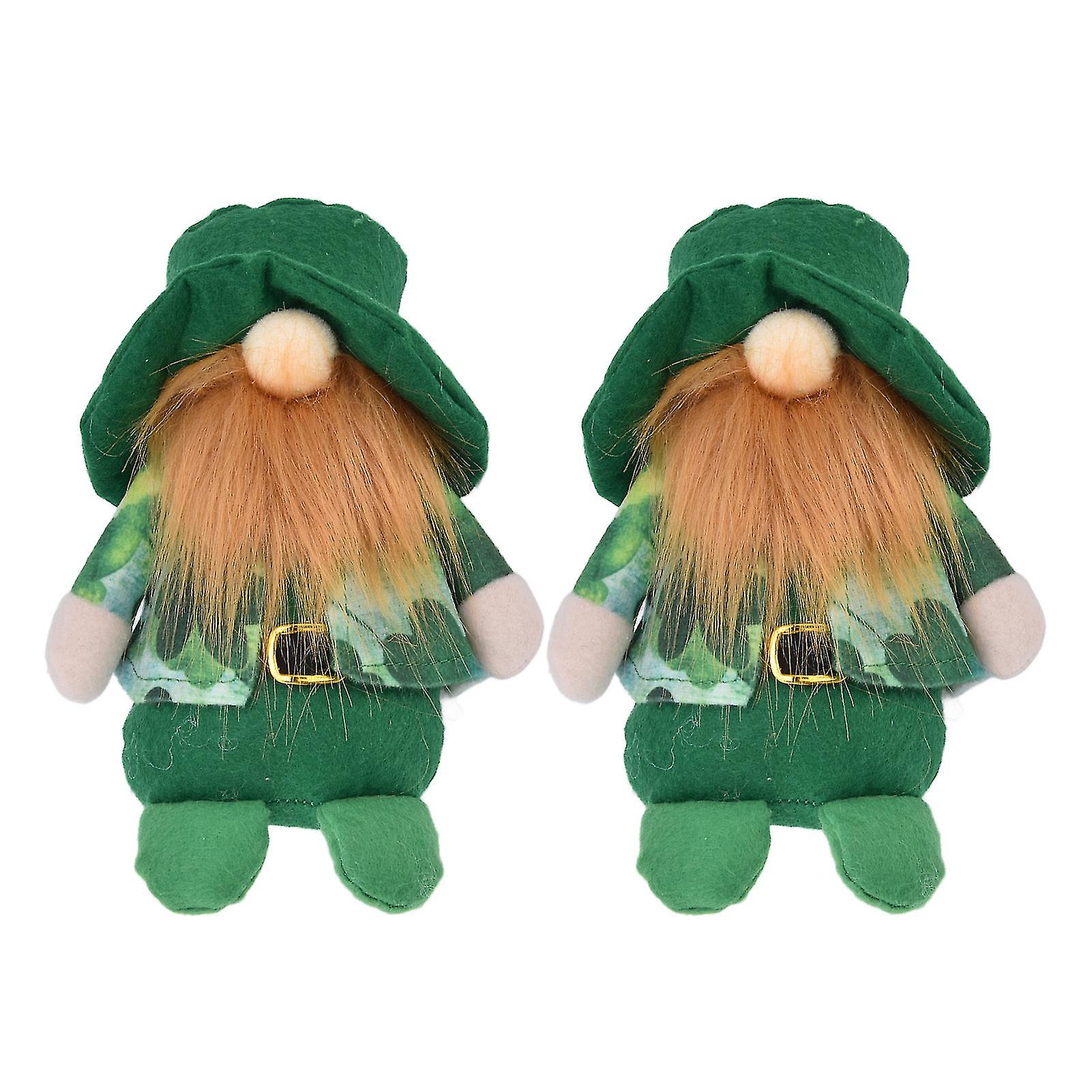 2pcs Handcrafted Gnomes Dolls with Green Hats for St Patricks Day Decoration, Cute Faceless Figurines for Room Sofa Table Men