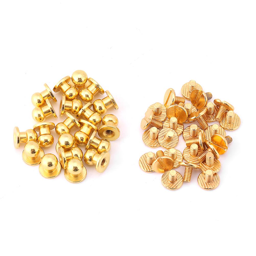 20pcs Solid Brass Nail Rivet Buttons 8x6mm Round Head DIY Leather Craft Accessories Gold Tone Durable Fastener