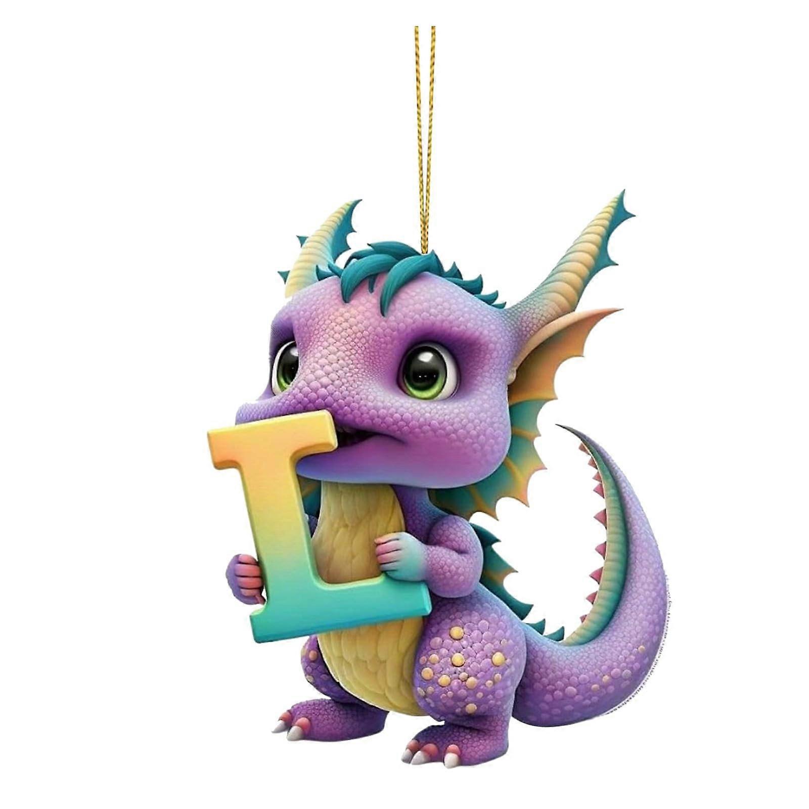 Christmas Tree Dinosaur Ornaments 26 Letters 2D Acrylic Dinosaur Figures Hanging Decorations One Size L