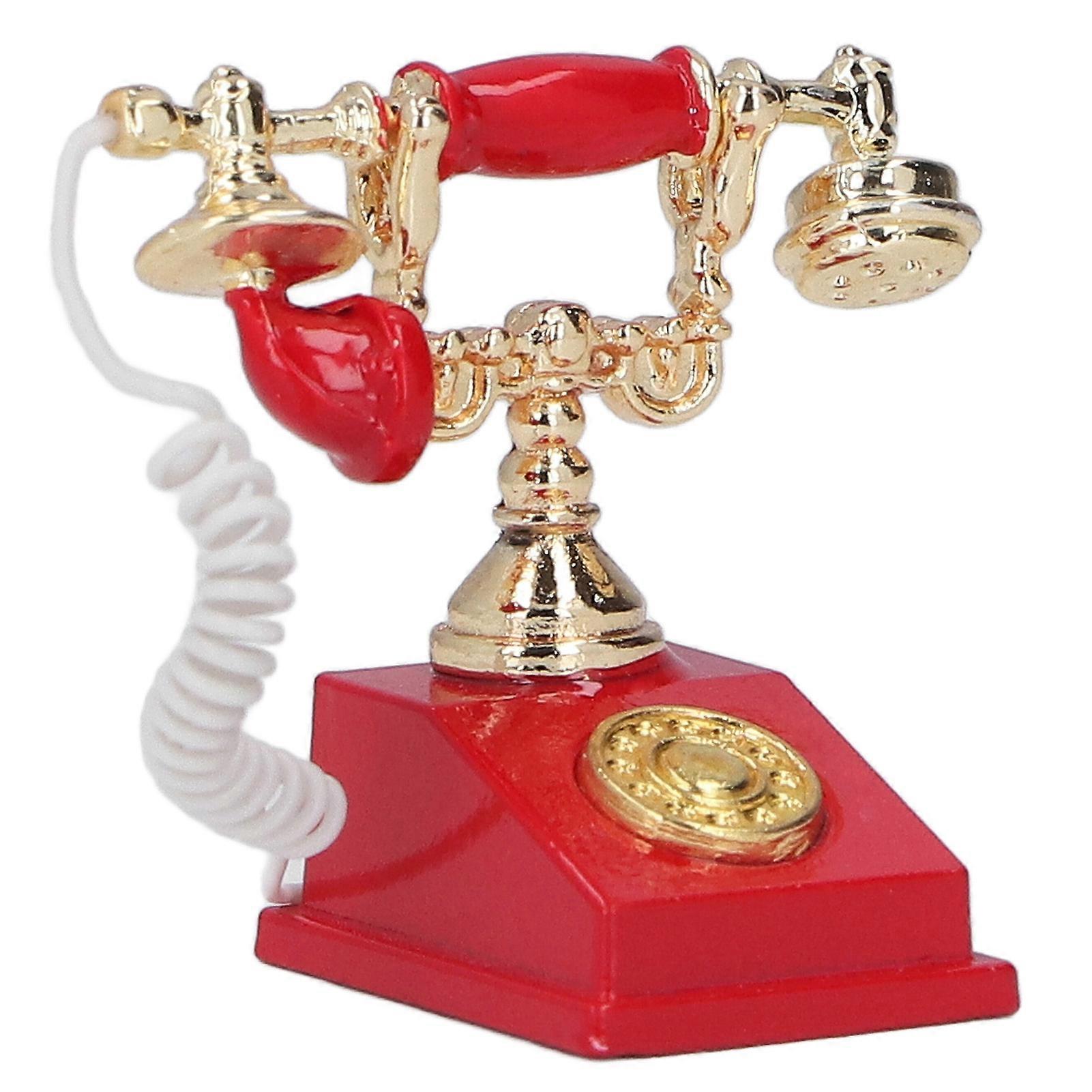 1:12 Dollhouse Mini Phone Model Retro European Vintage Style Red Simulation Phone Decoration for Dollhouses