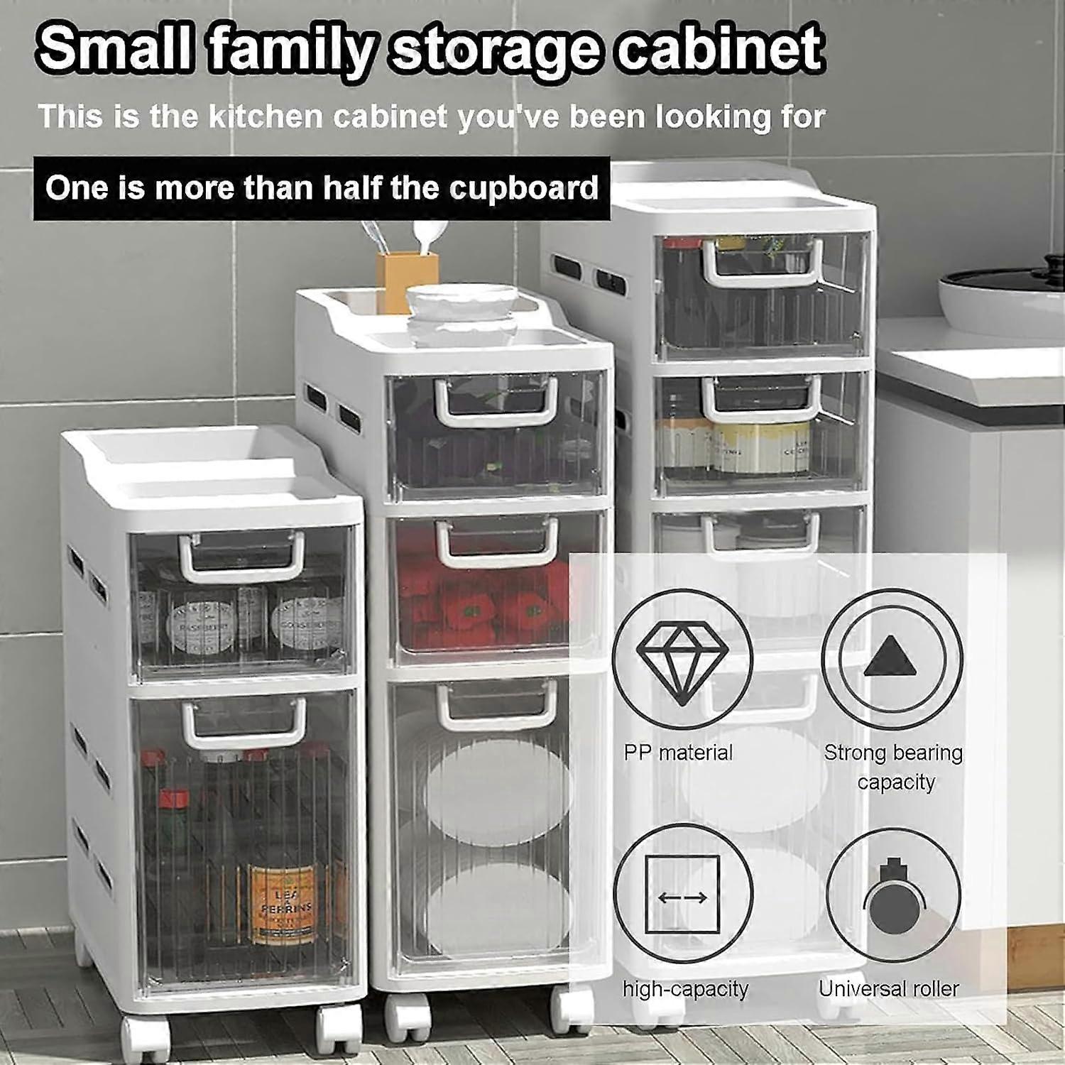Slim Bathroom Storage Cabinet Tall Narrow Clear Drawers Waterproof Toilet Paper Large Capacity Freestanding Tower Silent Casters