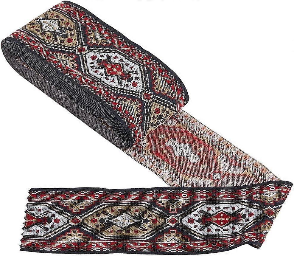 5.47 Yards 2" Wide Vintage Jacquard Ribbon Trim, Embroidered Fabric Lace Edge for DIY Clothing, Embellishment, Decorations