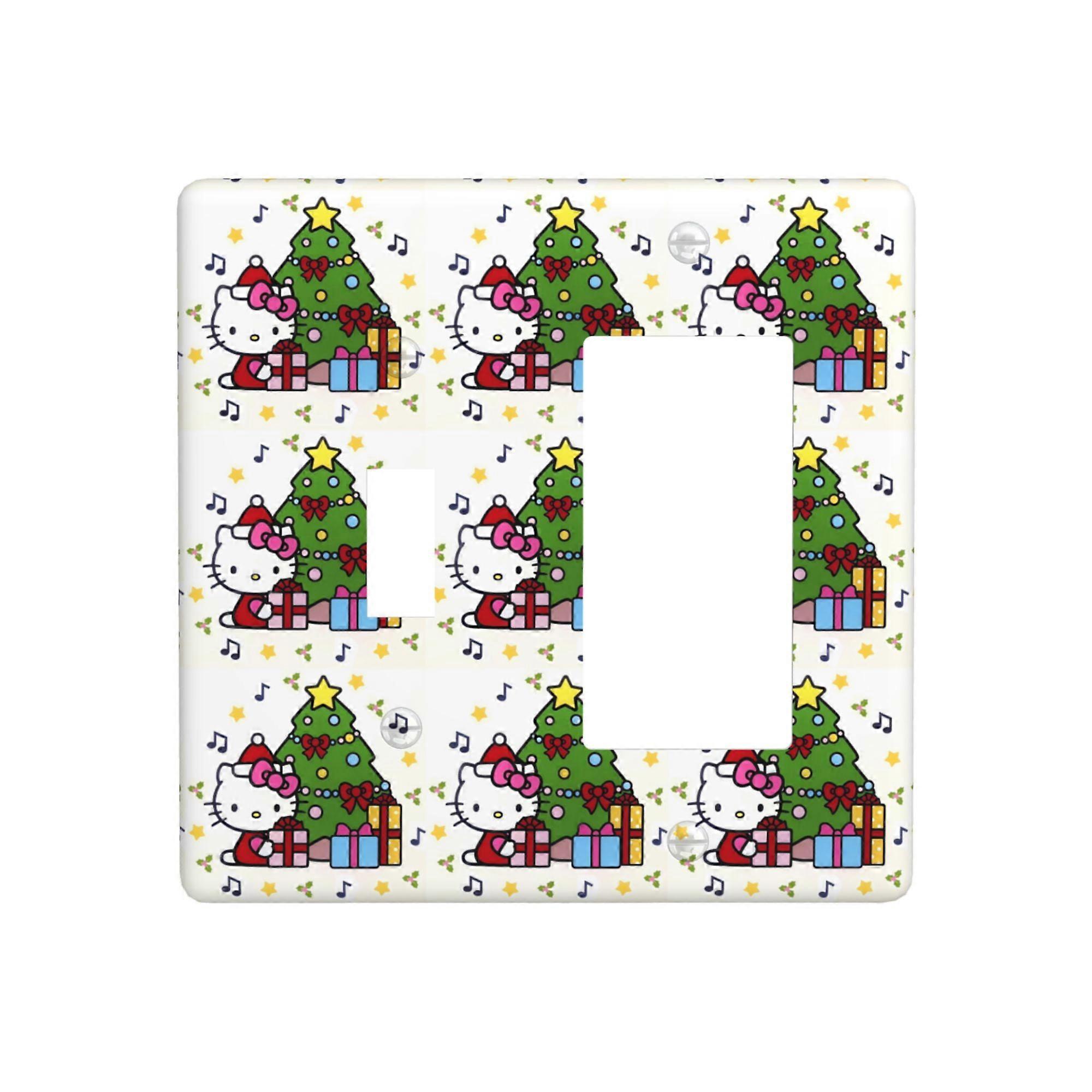 Hello Kitty Christmas Print Wall Panel Decor, Compatible with Switch, PC Material 4.5x4.5 in, for Home Bedroom Kitchen