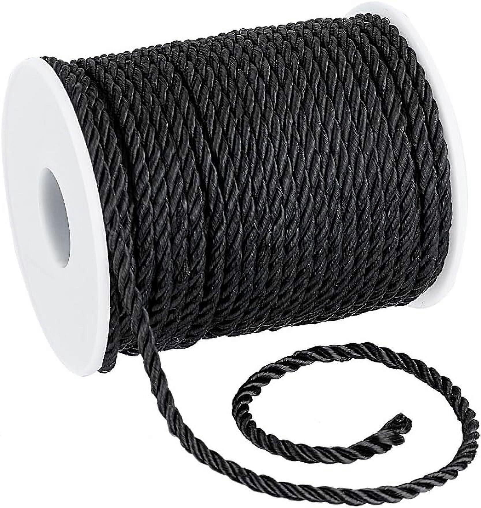 3mm 32.8 Yards Black Twisted Rope Trim, 3-Ply Braided Cord with Spool, Satin Milanese for Home, Curtain, Graduation Decor