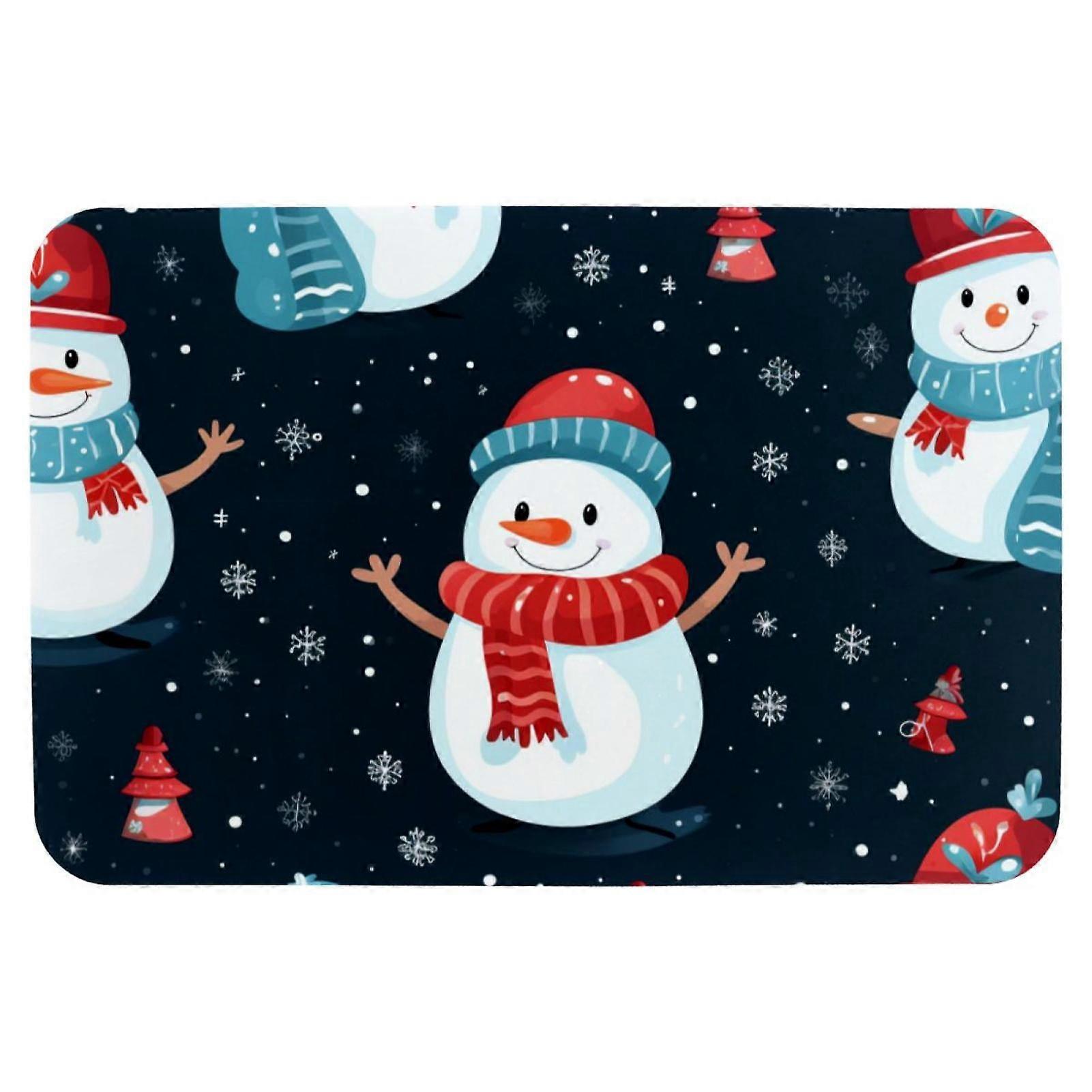 20x31in Christmas Snowman Memory Foam Bath Mat, Machine Washable, Non-Slip, Quick Dry, Soft & Absorbent - Compatible with Leathaire