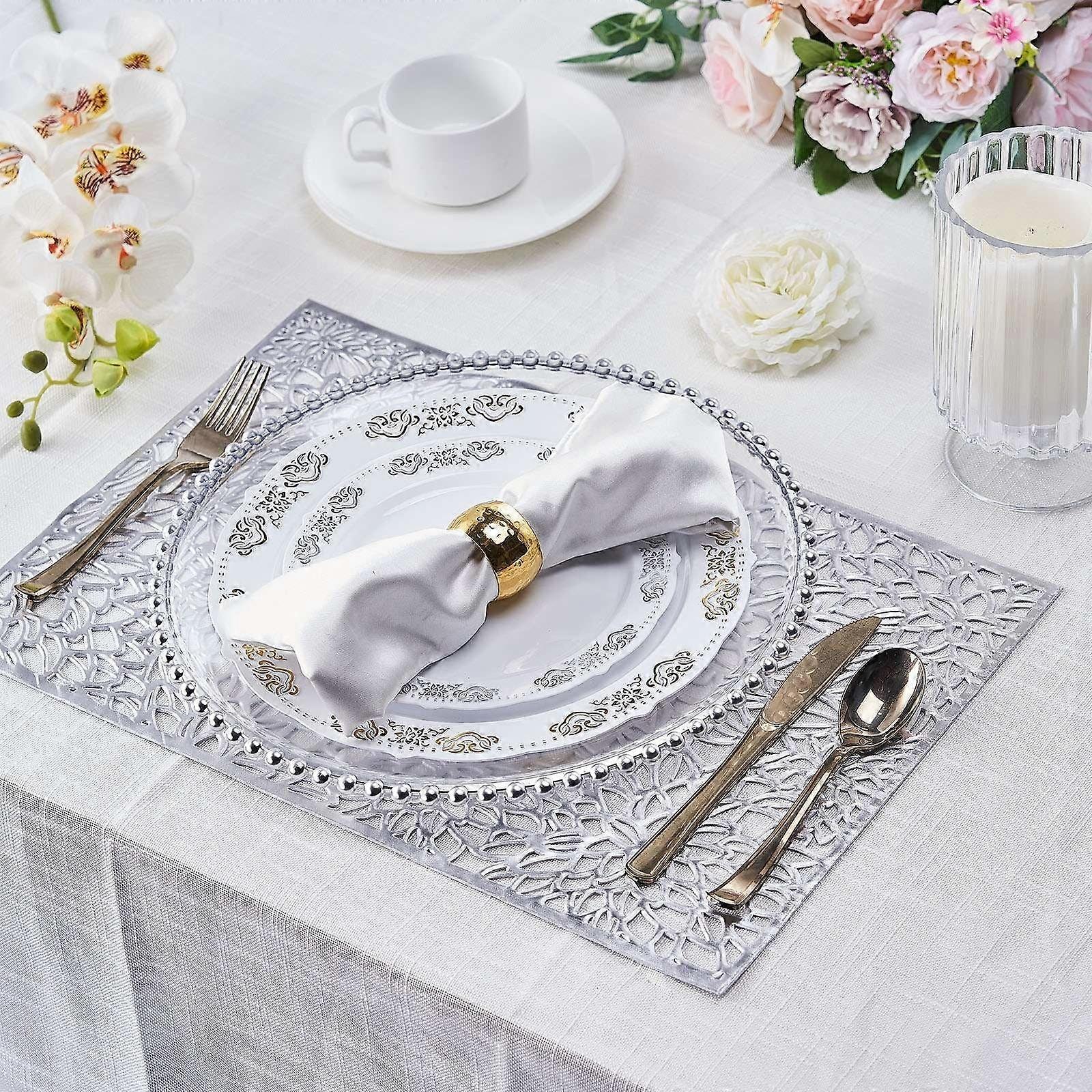 NANDIYNZHI Big Deals Fashion Hollowed Out Flower Bronzing Placemats Pvc Insulation Deformation Afternoon Tea Rectangular Placemats. Placemats Silver
