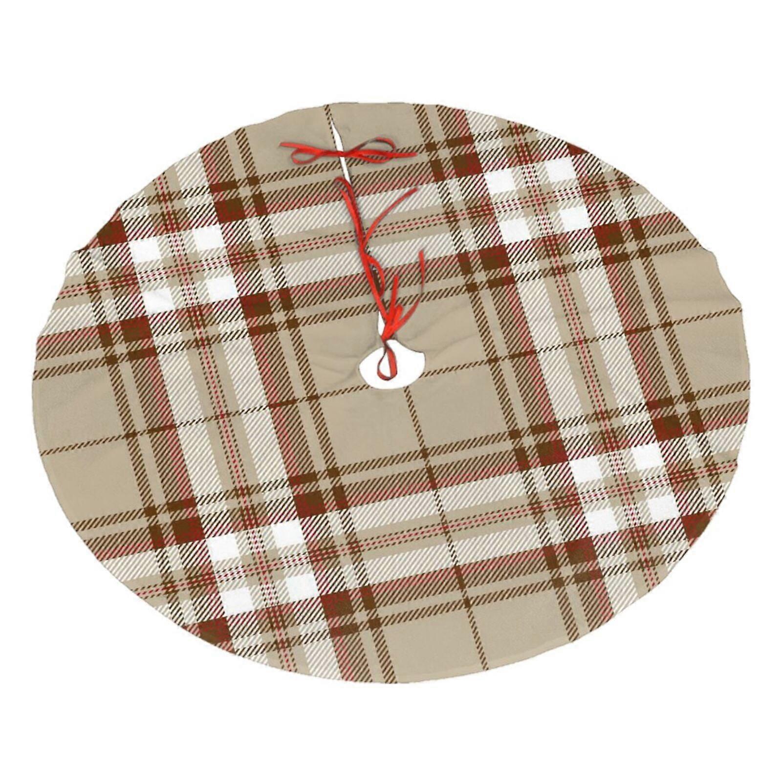 Brown Red Tartan Plaid Christmas Tree Skirt, Soft And Funny Merry Christmas Tree Collar Farmhouse Xmas Holiday Decoration 30"