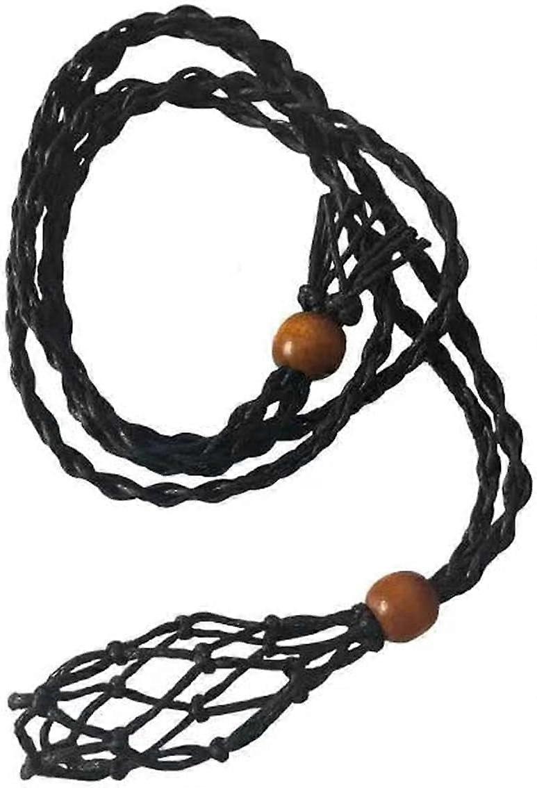 Extra Super Large Black Necklace Cord Crystal Holders Handmade Quartz Cage, Diy Bracelet Jewelry Making Upgraded Adjustable Tibetan Wooden Beads