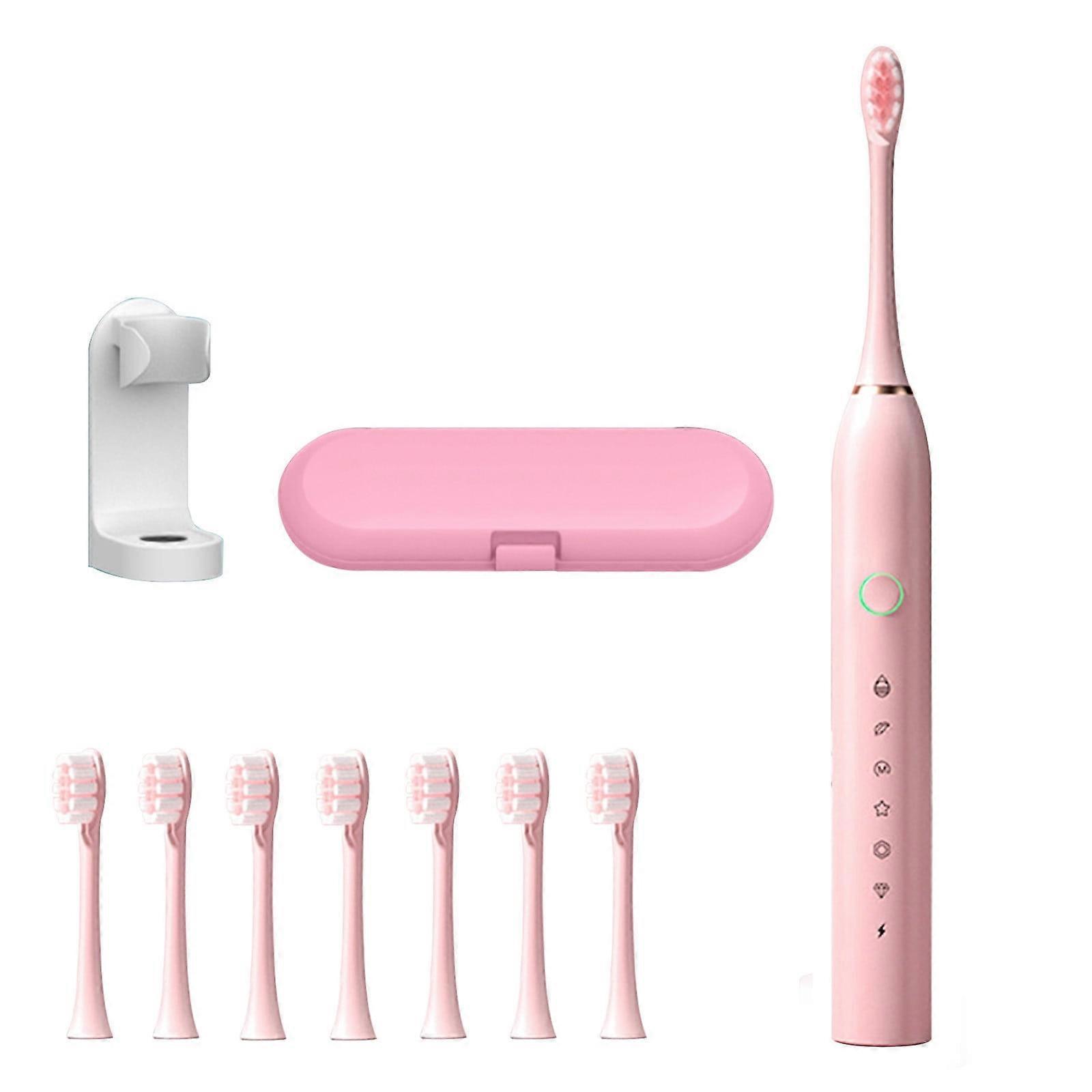 USB Rechargeable Electric Toothbrush for Adults, 8 Heads, Travel Case, Holder, 6 Modes, Whitening, Soft Bristle, Compatible with Wmkox8yii