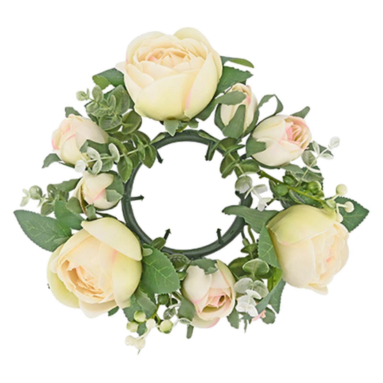 GUOOL Candle Artificial Wreath Greenery Rose Wreath Decorative Pillar Candle Holder for Door Living Room Centerpieces Ornament Yellow