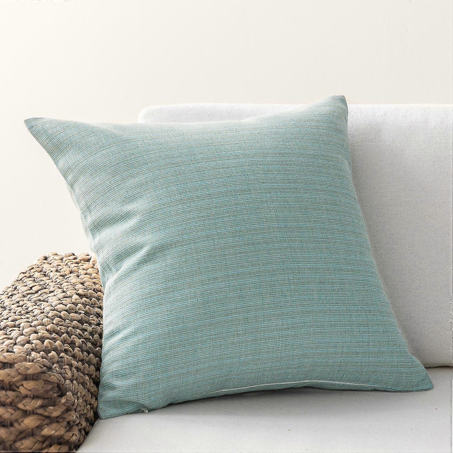 Outdoor Horizontal Striped Pillow Cover, Square Cushion Cover for Couch, Patio, Turquoise, 18" x 18", 1 Pack
