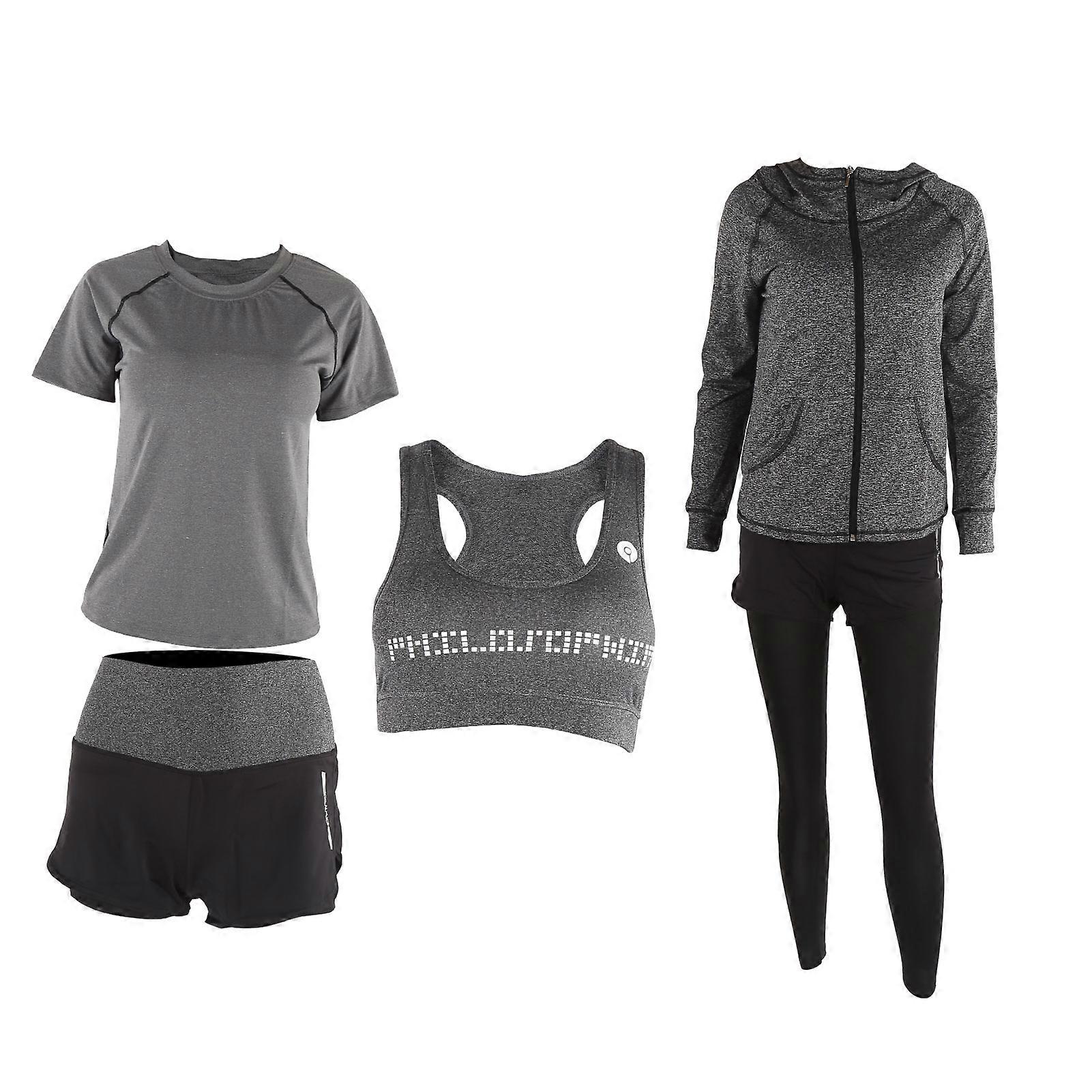 5pcs Women Yoga Set Sportswear Gym Coat Long Sleeve Top Leggings Shorts Yoga SuitDark Gray L Item Type: Women Yoga Set Material: Polyester Product Weight: Approx. 772-940g / 27.2-33.1oz