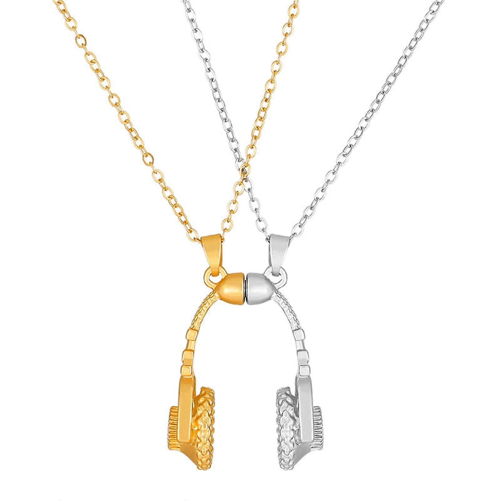 Valentine's Day Gift - WJSXC Magnetic Headphone Pendant Pair, Compatible with All Devices, Creative Couple Necklace for Him & Her