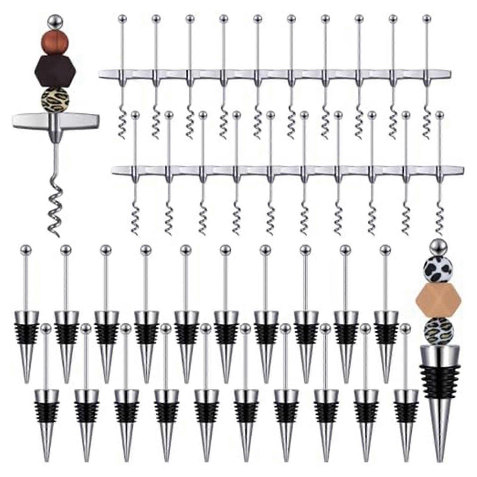Beaded Wine Tool Set: Set includes 20 beaded wine stoppers and 20 beaded openers, perfect for hosting large gatherings or sharing with other wine lovers; these wine stoppers feature a tapered design for easy insertion and removal perfect FOR DIY PROJECTS: Show off your creativity with our beverage storage containers, allowing you to use your imagination to create your own special bottle stoppers. You only need to gently rotate the top round bead, and then string the beads you like (not included in the product), no other tools are needed, giving you a good experience. QUALITY & DURABILITY: Our beaded bottle stoppers and beaded bottle openers are made from high-quality alloy materials for superior reliability and durability, ensuring your wine accessories remain strong and reliable for a long time, making every wine session a great one Relaxing experience SIZE FOR WINE LOVERS: Our beaded wine bottle stoppers measure approximately 4.33 x 0.79 inches/11 x 2 cm, suitable for most wine bottles, widely suitable for wine bottles with an inner diameter of approximately 4.72-7.87 inches, while our beaded wine stoppers The corkscrew is approximately 5.31 inches/13.5 cm long; these dimensions your wine bottles are securely sealed and comfortable to hold when using our corkscrews, resulting in a great wine drinking experience Good gift choice: You can give these wine bottle stoppers as gifts to your family, colleagues, classmates or neighbors. They make an for a variety of occasions such as housewarming parties, birthdays and weddings, or as a special thank you gift.