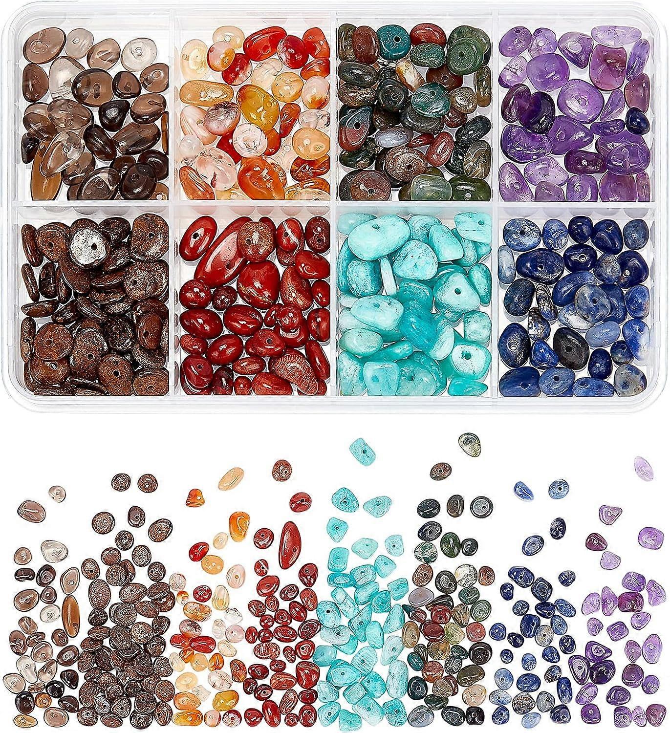 DIY Natural Stone Chip Beads Crystal Loose Chip Bead Mixed Irregular Gemstones for Earrings Bracelet Jewelry Making (8 Materials) DIY