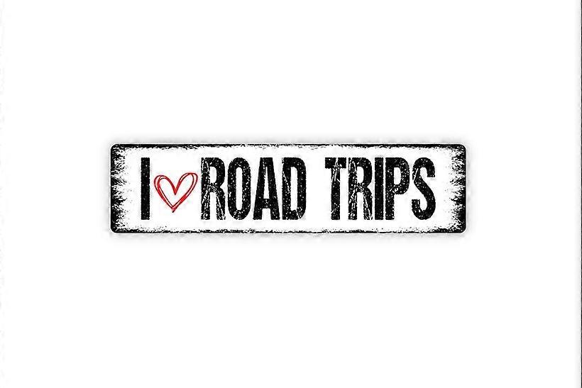 I Love Road Trips Sign Travel Adventures Rustic Street Metal Sign or Door Name Plate Plaque Size: 4 x 16 Inch