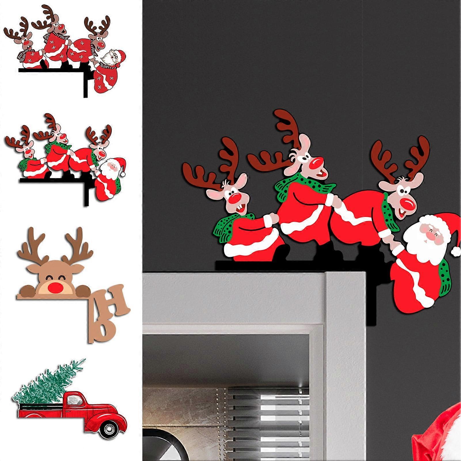 SUSUchens Christmas Door Corner Frame Decoration Festive Santa Claus Reindeer Wooden Trim Happy New Year 2023 Xmas Party Prop Home Decor Style D