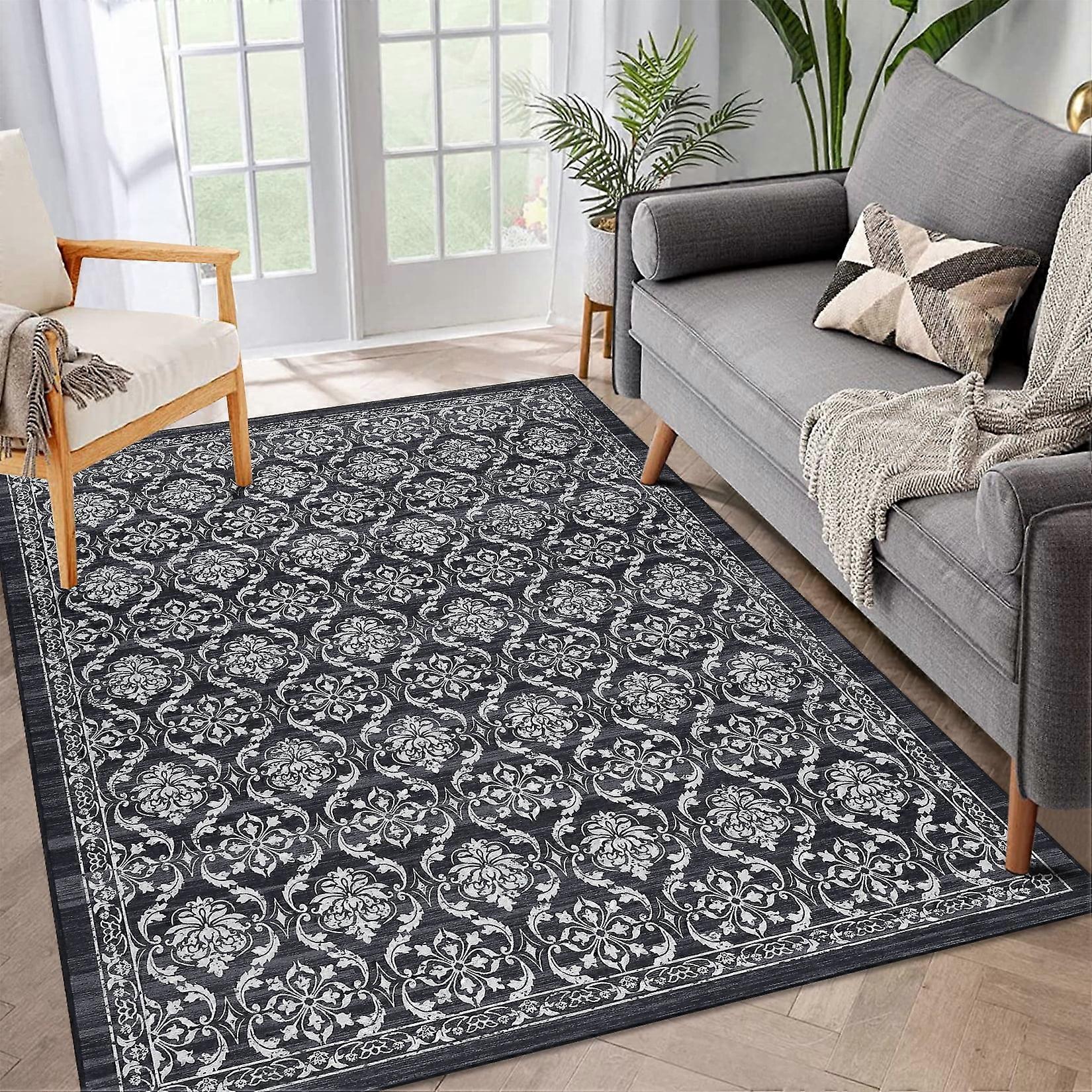 Haperlare Vintage Rugs Oriental Floral Distressed Accent Rug Machine Washable Rug Non-Slip Rug Boho Living Room Rug, 3' x 5' Gray Black