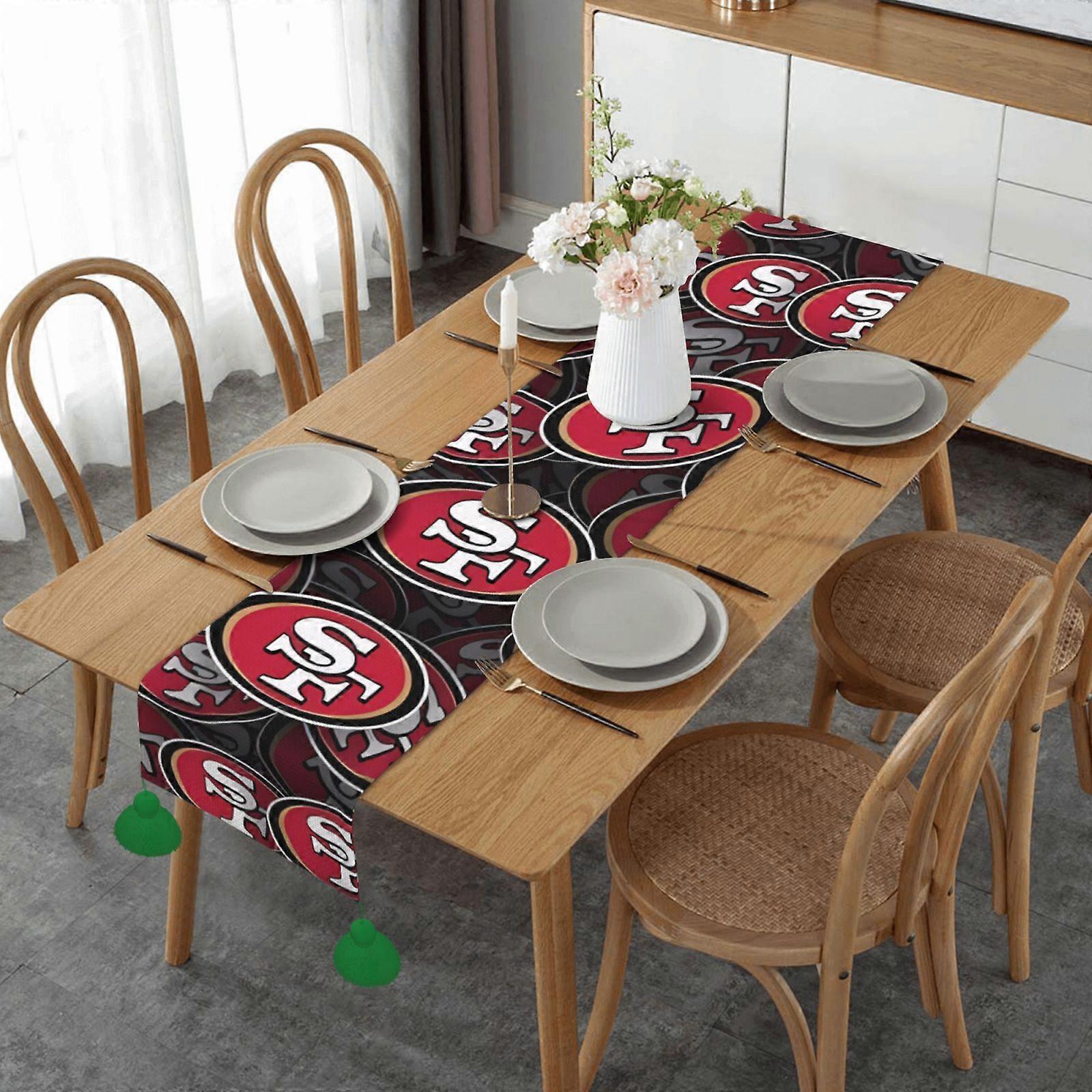SF_49ers Christmas Table Runner for Holiday Kitchen Dining Table, Winter Xmas Decor with Tassels, Indoor Outdoor Home Party Decoration
