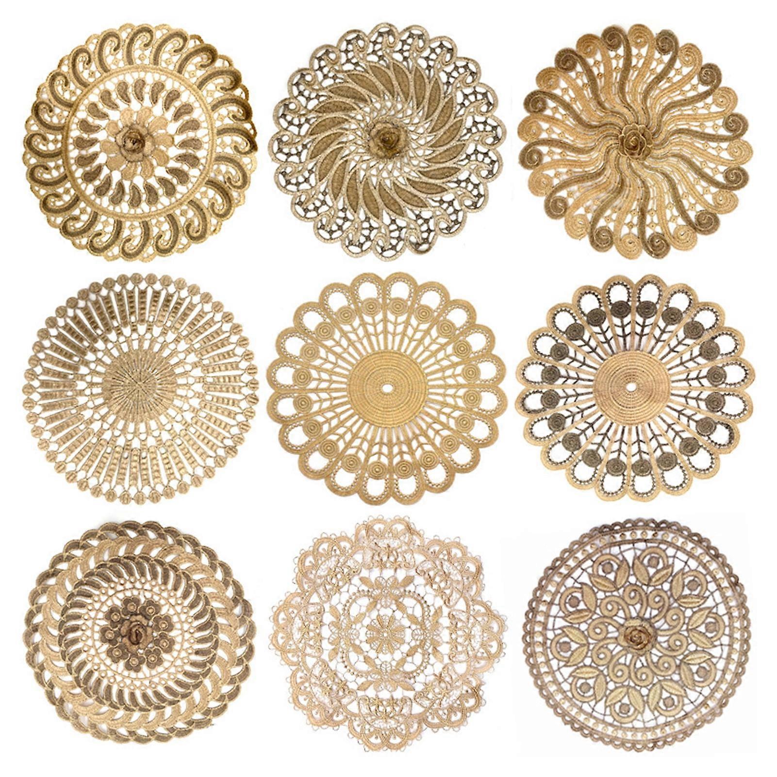 Description: This table coaster is designed with flower shape, which is elegant and stylish for you to decorate your table at banquet. Using this table coaster not only can decorate table but also can protective your table from scalding or scratching. Made with polyester material, this table coaster is tear resistant for long time used. The diameter of this product is 28cm. There are 10 styles for you to choose from. It is suitable for you to use at home, party, banquet, bar and so on. Item Name: Table Embroidery Placemat Material: Polyester Features: Vintage, Exquisite, Delicate Size Details: Diameter: 28cm/11.02" (Approx.) Notes: Due to the light and screen setting difference, the item's color may be slightly different from the pictures. Please allow slight dimension difference due to different manual measurement. Package Includes: 4 x Table Embroidery Placemat Design: Elegant, vintage-inspired crochet design Count: 4 doilies per pack Material: High-quality cotton Size: Medium, ideal for dressers and end tables Occasions: Perfect for Halloween, Valentine's Day, and everyday dining