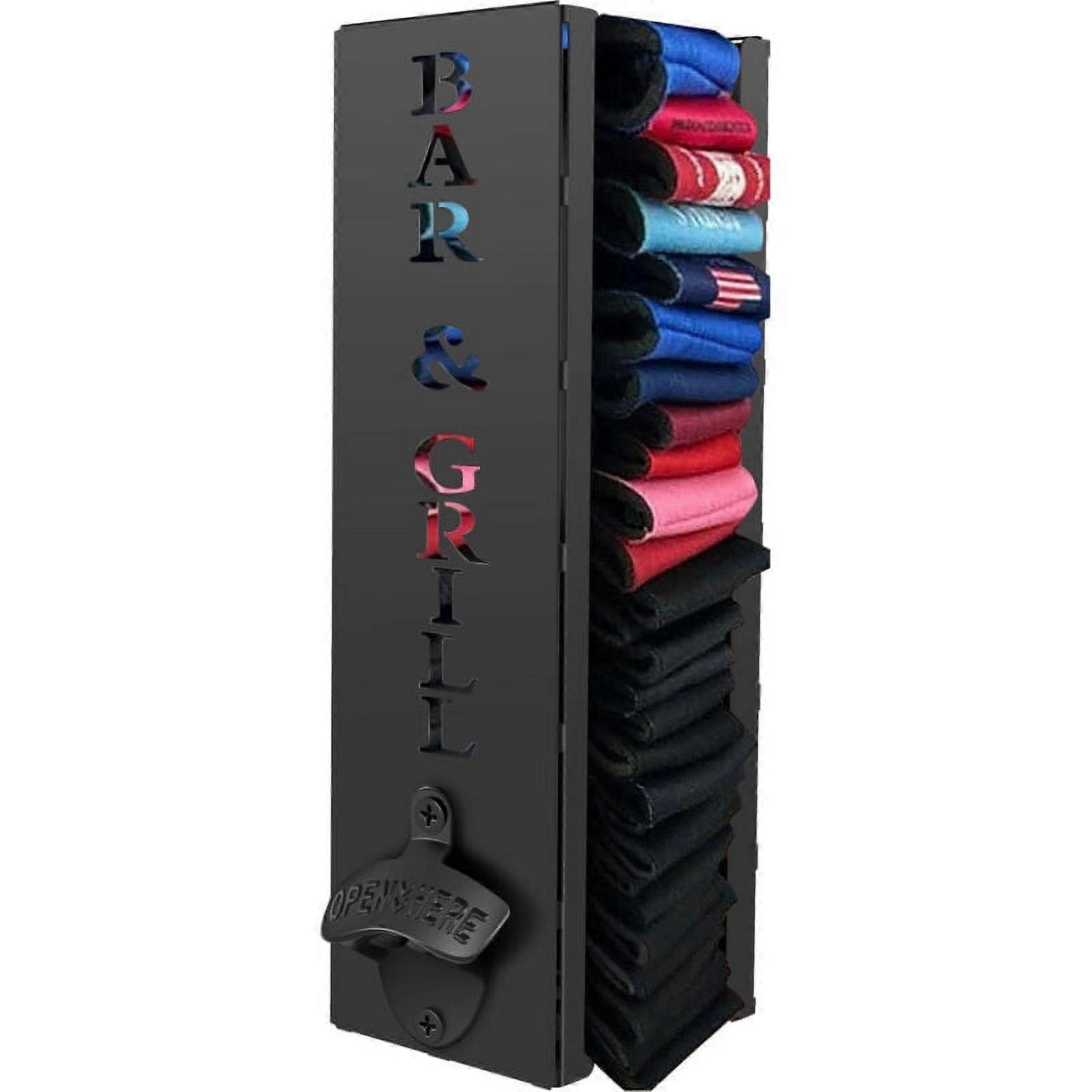 Qenwkxz Can Cooler Holder with Bottle Opener, 25-Pack Wall Mounted Can Dispenser Rack Compatible with Standard Cans, 11.8x3.9x3.9 Inch