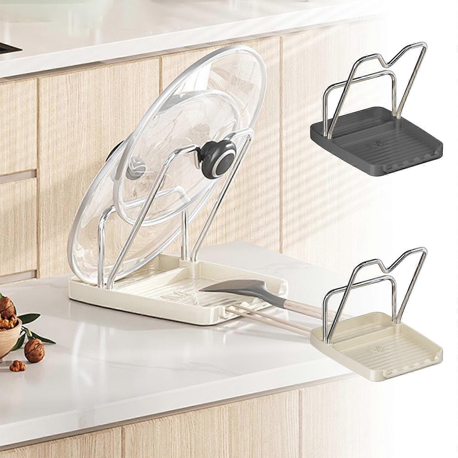 Jacenvly Christmas Decor Indoor Kitchen Countertop Shelf, Pot Lid Holder Drainer & Organizer with Draining Tray, Sturdy Chopping Board Rack