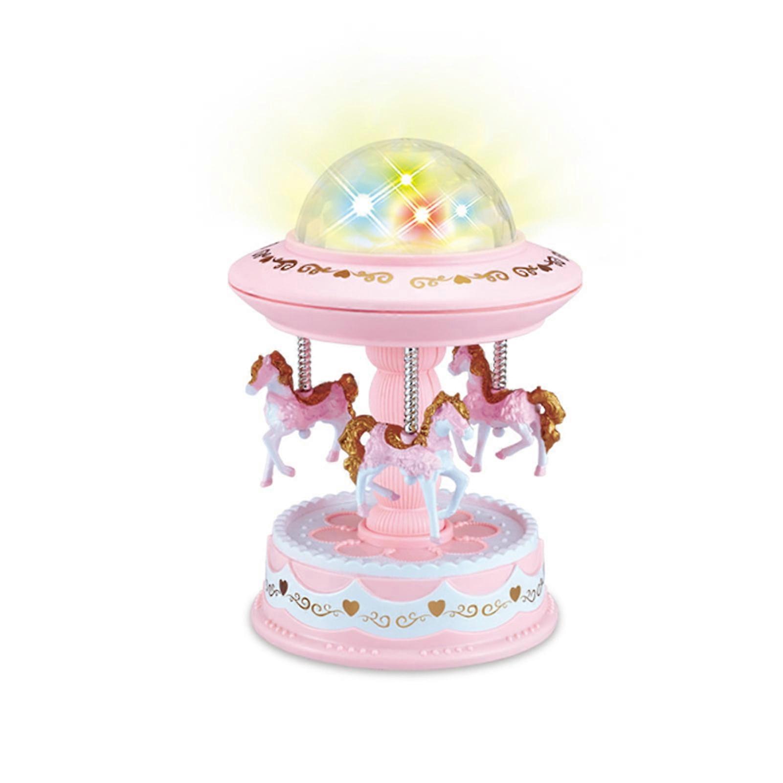 Music Box Cartoon Style Go-Around Lightweight Projection Music Box Carousel Luminous Gift for Children-Pink