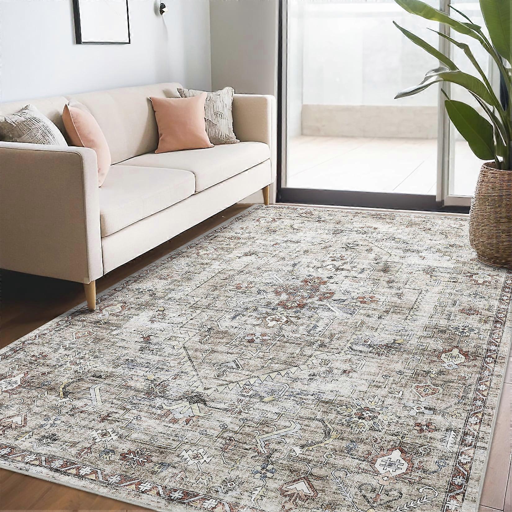Haperlare Brown Oriental Vintage Rugs Washable Stain-Resistant Area Rugs for Kitchen Dining Room 5'x7' Indoor Floor Rug