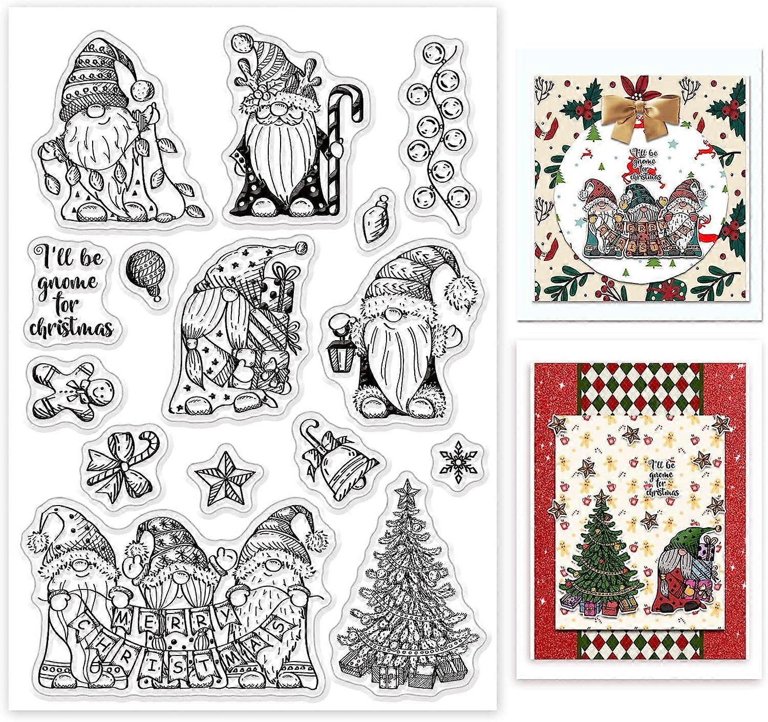 Christmas Gnome Clear Stamp Set - Gingerbread Man, Bell, Tree, Snowflake - Compatible with Scrapbook, Journal & Card Making (4.3 x 6.3 Inch)