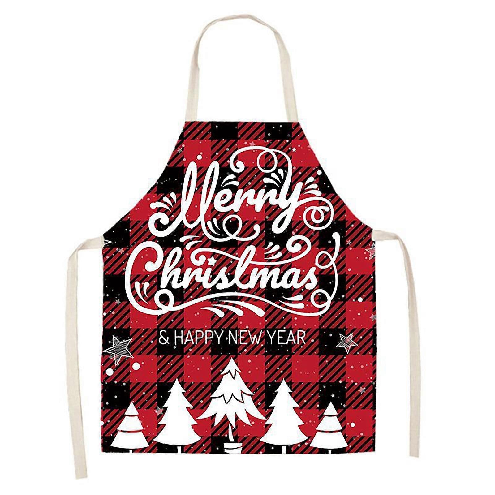 Christmas Kitchen Apron Red Black Buffalo Plaid, Adjustable Baking Apron with Socks, Snowman Elk Tree Pattern for Holiday Party