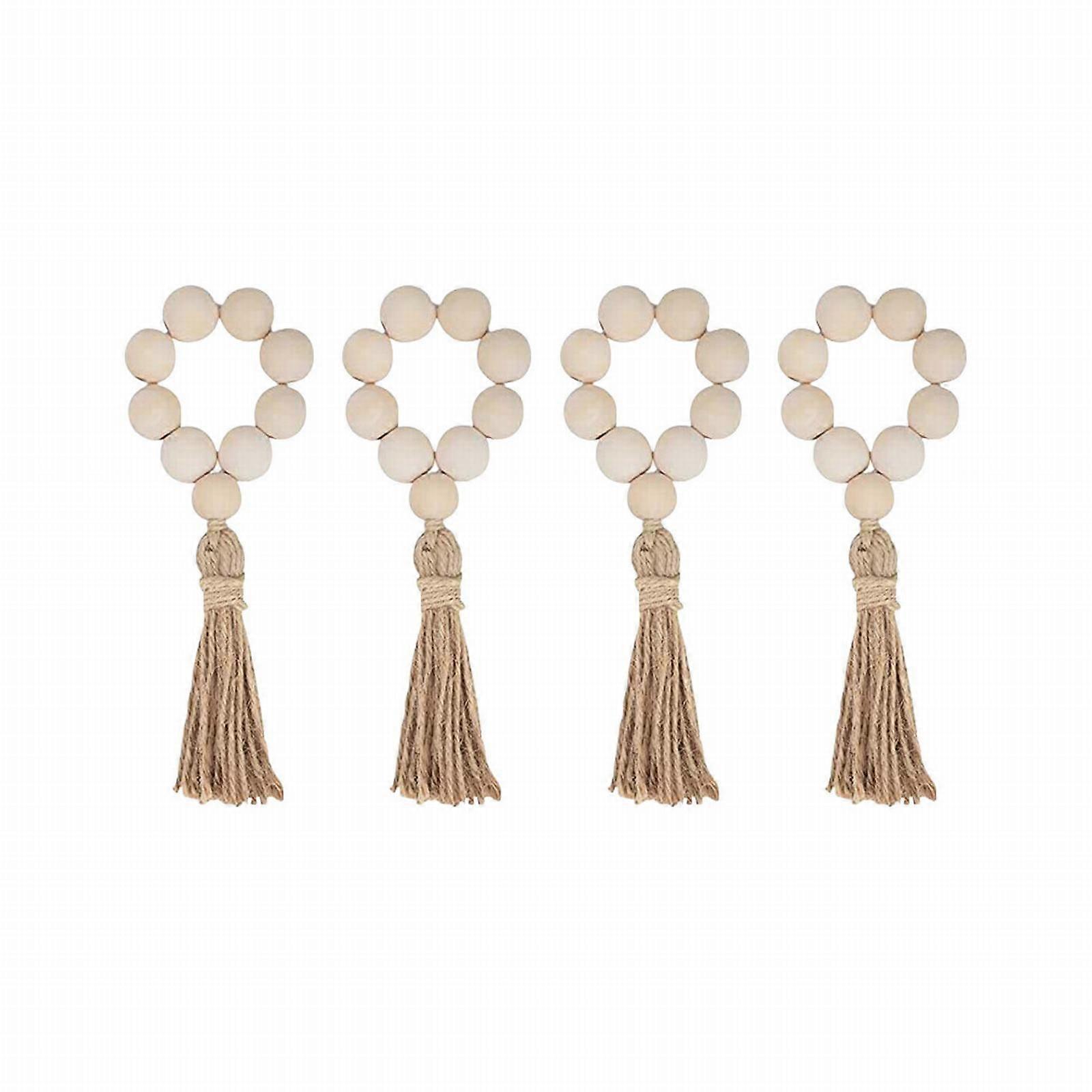Clearance: 4x Adjustable Hand Woven Wood Bead Tassel Napkin Rings with Elastic, Compatible with Placemats
