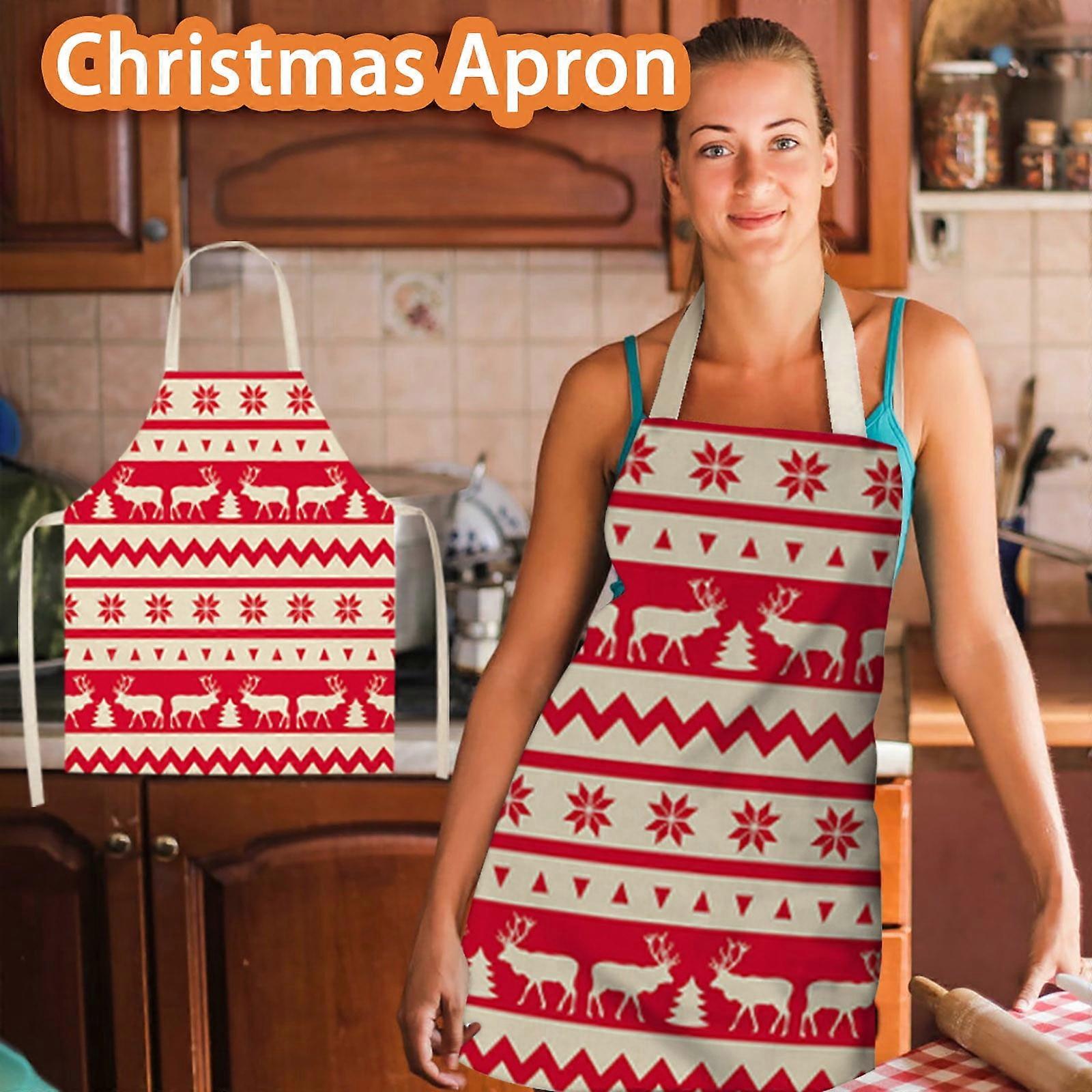 1PC Parent adult the Family Kitchen Christmas Print Linen Family Aprons, Christmas Aprons