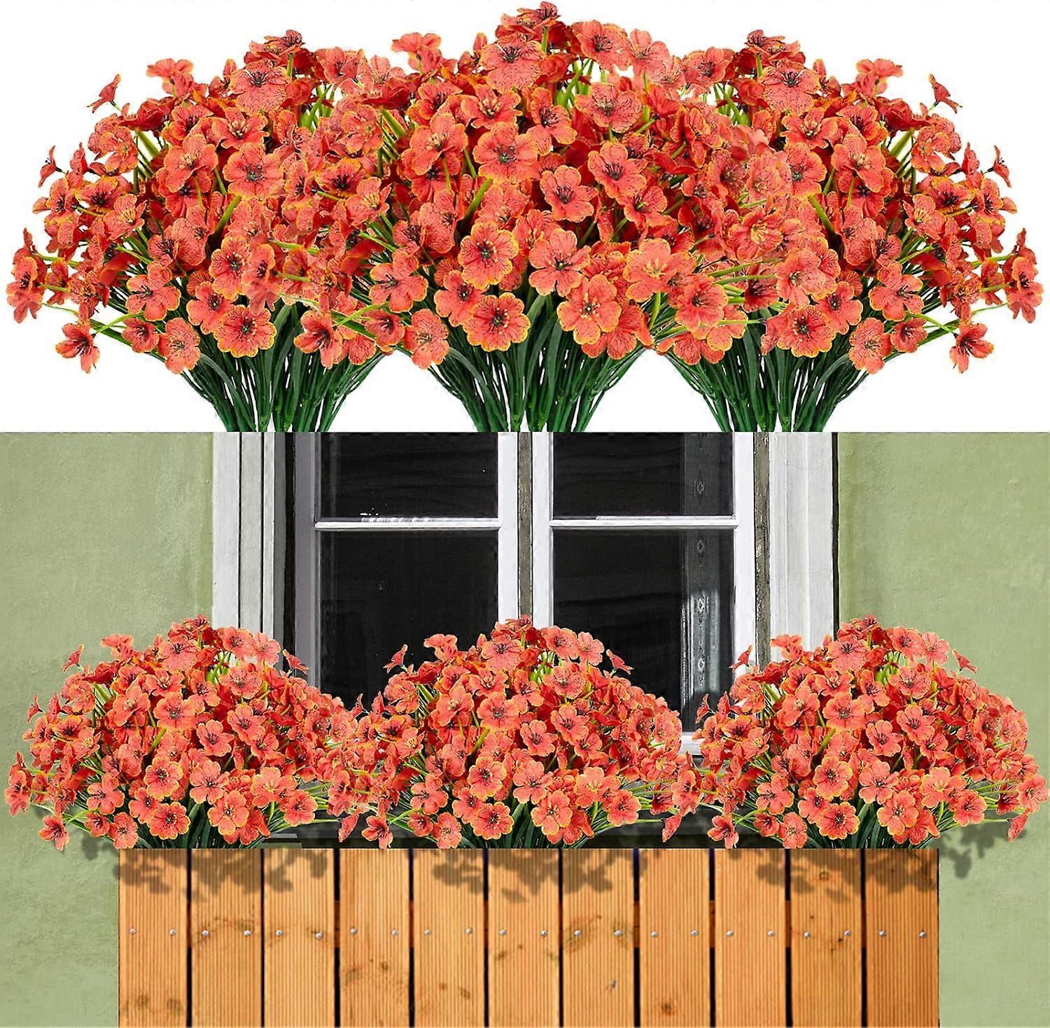 10 Bundles Artificial Flowers, UV Resistant Fake Silk Plants, Plastic Faux Shrubs for Outdoor, Front Porch, Window Box, Garden, Home Decor (Autumn