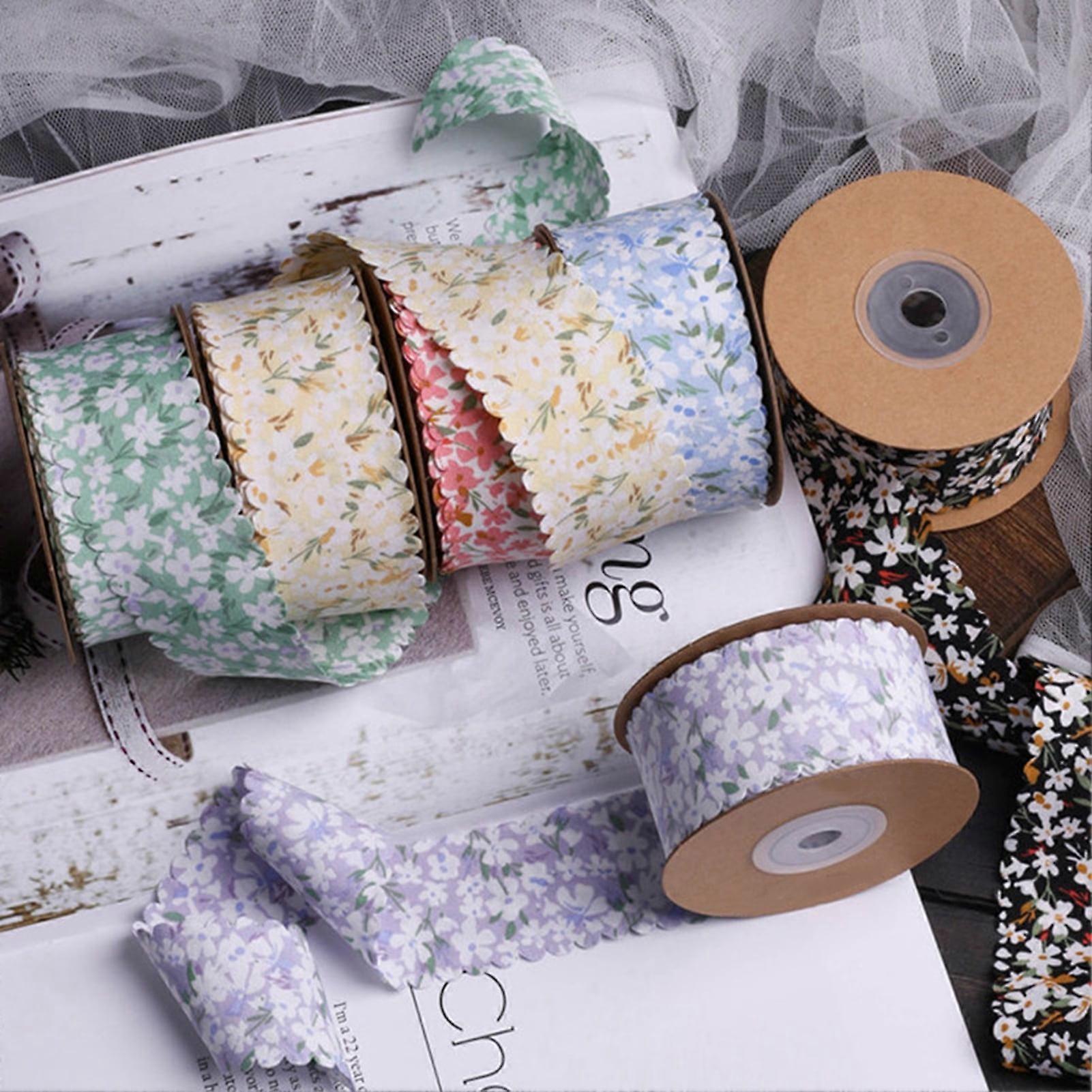 Hesroicy 1 Roll 10 Yards Floral Ribbon Vintage Elastic Polyester Wavy Edges Wrapping Ribbon Party Decoration