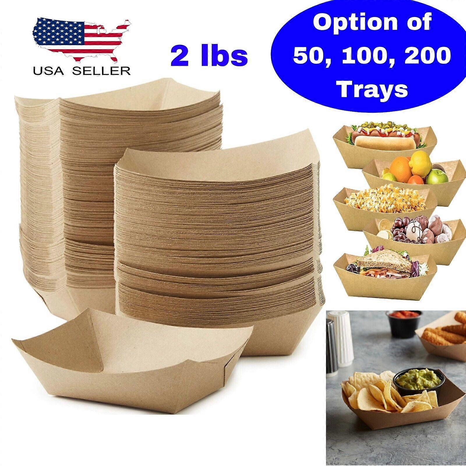 (2 Lb) Kraft Paper Food Tray Boat Brown Disposable Serving Trays for Food, Snack