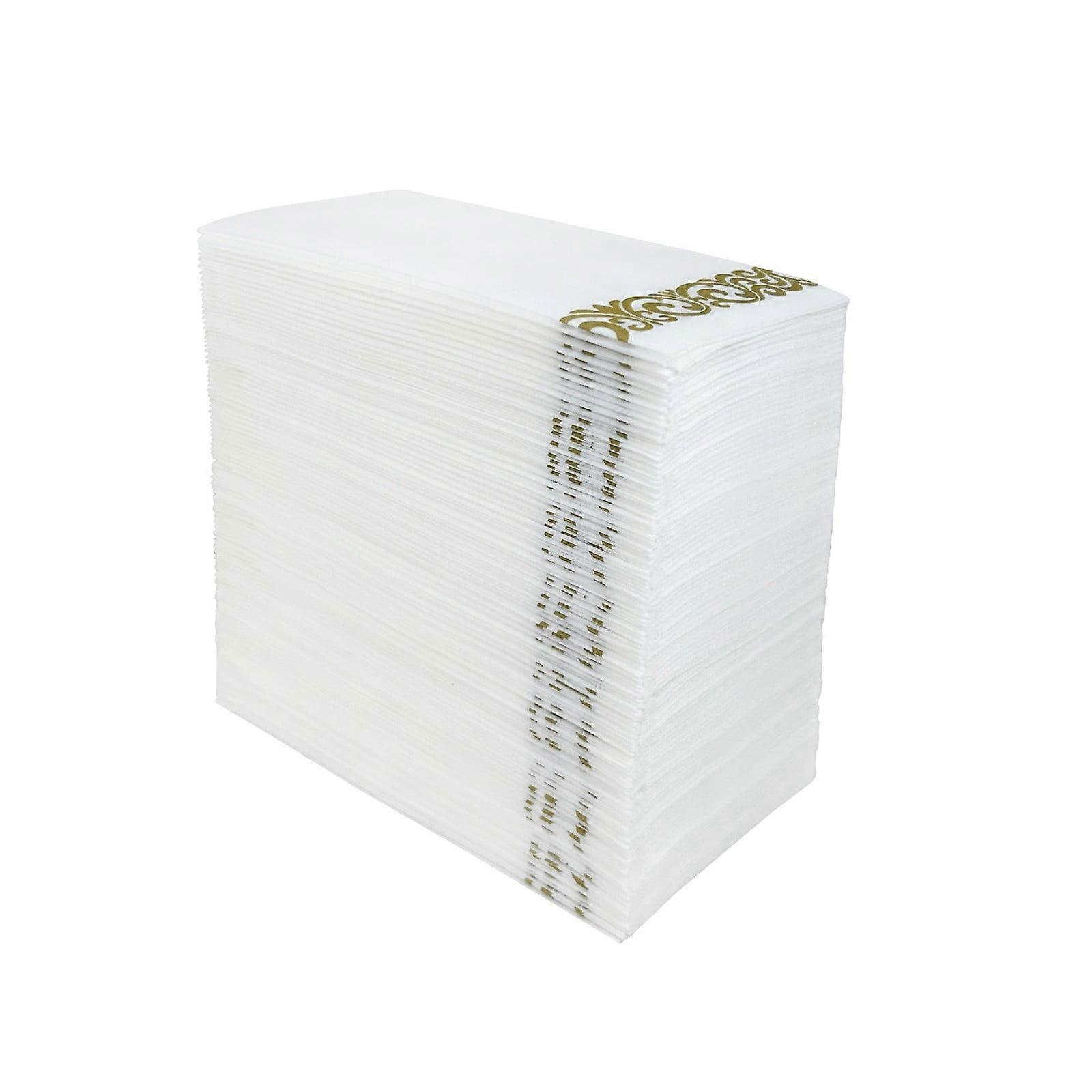 Poaug Cotton Towels 100Pc 12x15.75In Vintage Printed Napkins, Disposable Guest Towels for Hotels, Restaurants, compatible with Western Dining, White