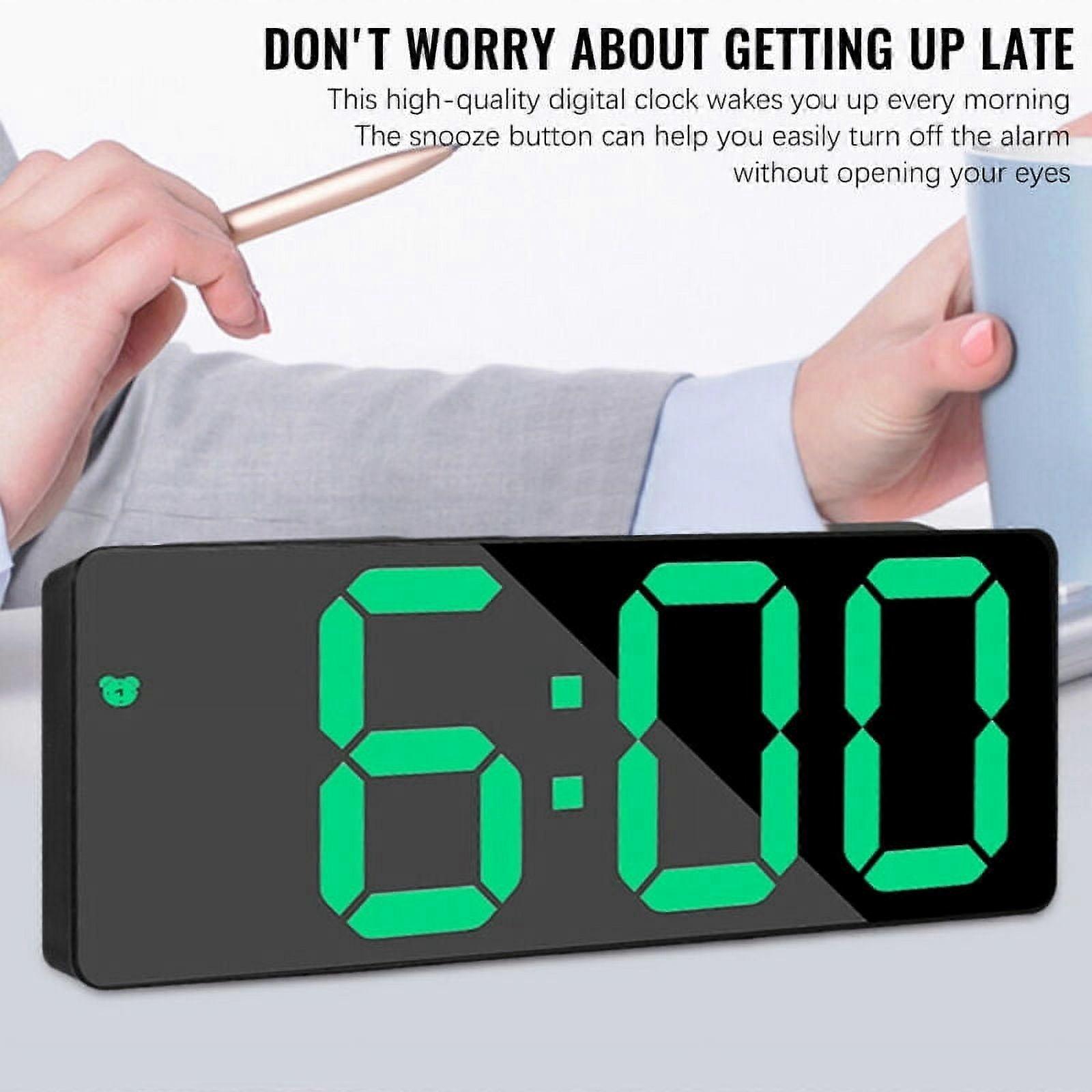 Description: 1.This digital alarm clock has an LED display, easy to read, and an ultra-thin body; due to its simplicity, it is one of the best alarm clocks in the bedroom. This high-quality digital clock allows you to wake up every morning. The snooze button can help you easily turn off the alarm without opening your eyes. You can set a snooze time of 1-60 minutes (the default snooze time is 5 minutes). 2.Brightness adjustable: clear and comfortable visual effect, it will automatically dim at 6:00 pm. When plugged in with a USB cable, the LED light will always light up. When using battery mode, the screen will automatically turn off after 10 seconds. You can activate the screen by voice, or press any key to turn on the screen. In any mode, press and hold "LIGHT / SNOOZE" for 3 seconds to turn off the screen. 3.Powered by USB or battery: The alarm clock can be powered by a USB cable or 3 AAA batteries (not included). Note: If the alarm is running on battery, the alarm will be on for 5 seconds and then off, and then you can activate the screen by clapping your hands. Save energy and make you sleep better at night. If via USB, the clock will always be on. 4.Easy Use : The clock has been designed with absolute simplicity in mind and you will have no problem whatsoever operating it. 5.Ideal Gift:It is an excellent gift idea for Birthday, Graduation, Housewarmings and New Year ect. Features: Material: ABS Size: 16*6cm (Due to the manual measurement, there will be an error of 1-3 cm.) Color as shown (Due to the different monitors, there will be some color differences.) Battery: 3*AAA battery (not included) Parts List: 1*Alarm clock 1*usb line 1*Instruction This digital alarm clock has an LED display, easy to read, and an ultra-thin body; due to its simplicity, it is one of the best alarm clocks in the bedroom. This high-quality digital clock allows you to wake up every morning. The snooze button can help you easily turn off the alarm without opening your eyes. You can set a snooze time of 1-60 minutes (the default snooze time is 5 minutes). Brightness adjustable: clear and comfortable visual effect, it will automatically dim at 6:00 pm. When plugged in with a USB cable, the LED light will always light up. When using battery mode, the screen will automatically turn off after 10 seconds. You can activate the screen by voice, or press any key to turn on the screen. In any mode, press and hold \"LIGHT / SNOOZE\" for 3 seconds to turn off the screen. Powered by USB or battery: The alarm clock can be powered by a USB cable or 3 AAA batteries (not included). Note: If the alarm is running on battery, the alarm will be on for 5 seconds and then off, and then you can activate the screen by clapping your hands. Save energy and make you sleep better at night. If via USB, the clock will always be on. Easy Use : The clock has been designed with absolute simplicity in mind and you will have no problem whatsoever operating it. Ideal Gift:It is an excellent gift idea for Birthday, Graduation, Housewarmings and New Year ect.
