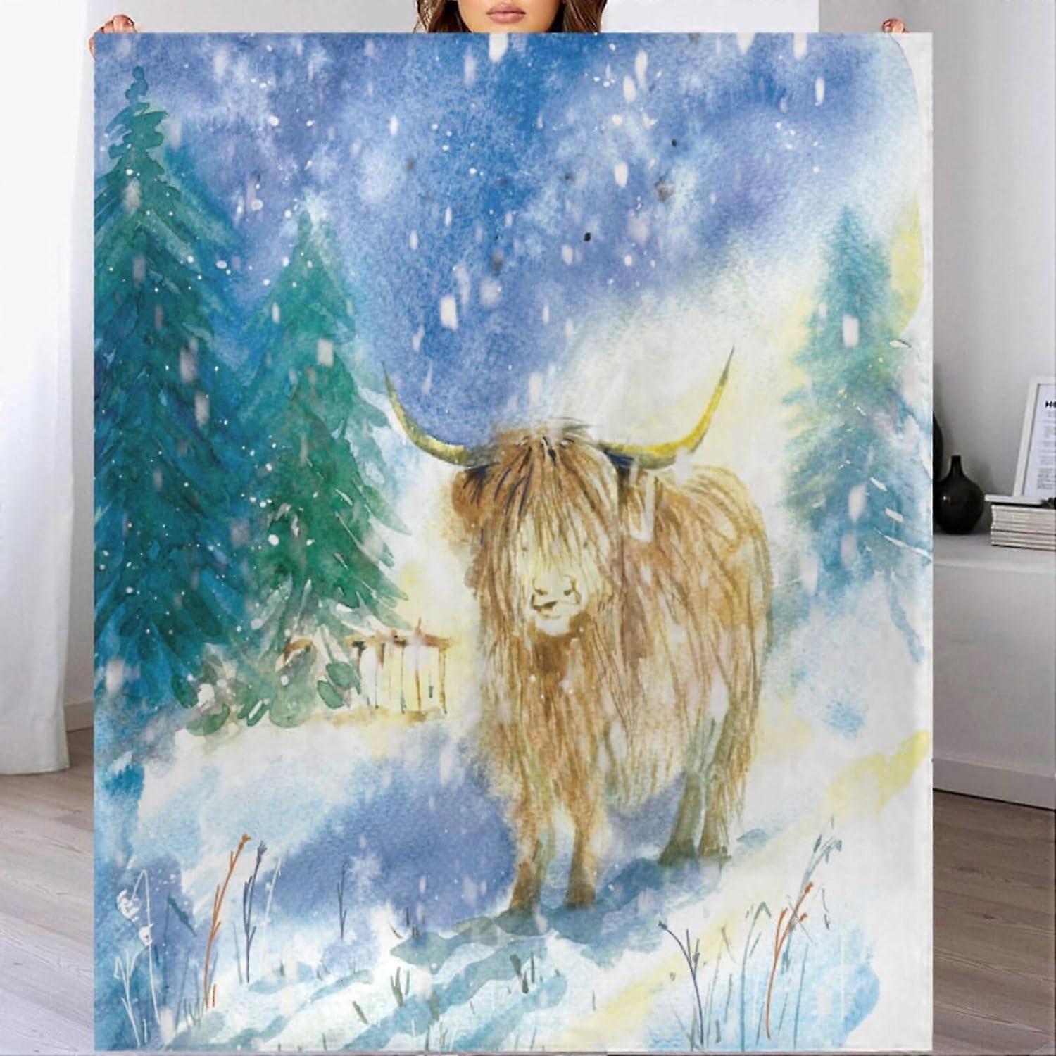 Throw Blanket for Couch 50x60 Inches, Highland Cow Soft Cozy Flannel Fleece, Lightweight Warm Fuzzy Custom Blanket for Bed Sofa Chair