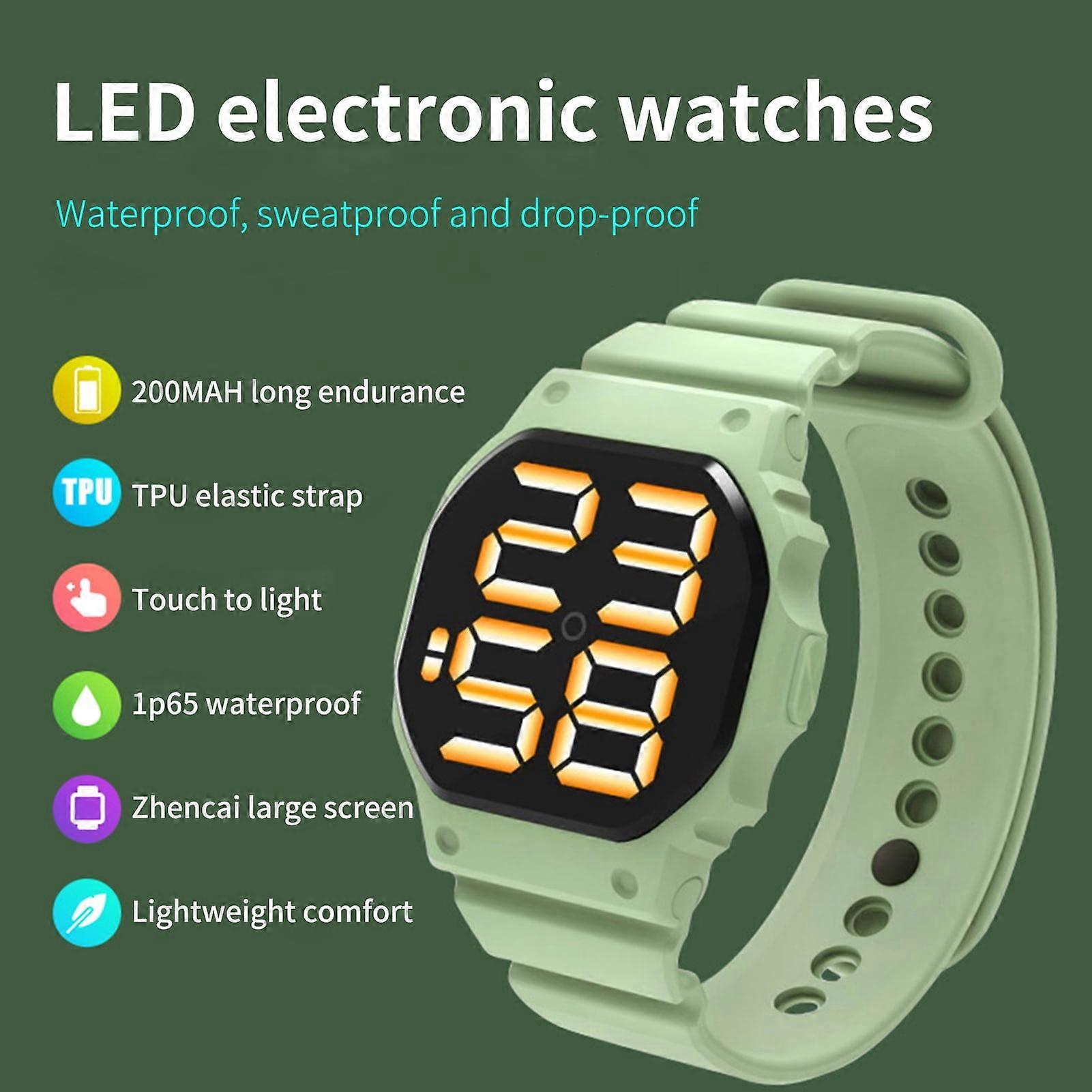 SUSUchens C5 LED Watch 30M Waterproof, Large Luminous Screen, Fashion Digital Watch for Students, Army Green - Size A
