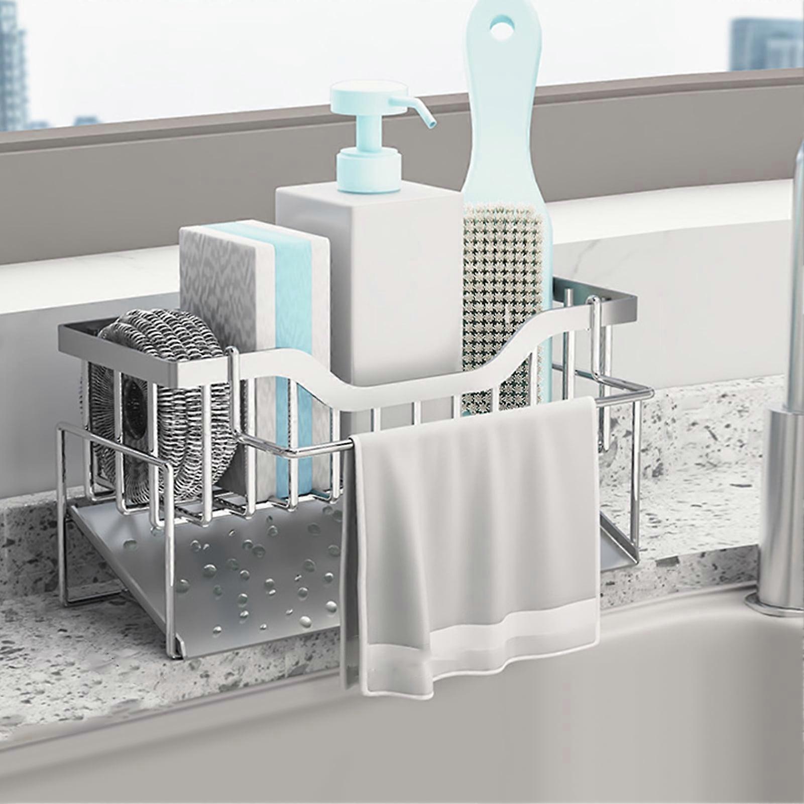 Hesroicy Sink Drain Shelf - Stainless Steel Countertop Rack, Oblique & Hollow Design, No Installation Needed, Holds Dish Soap, Sponges