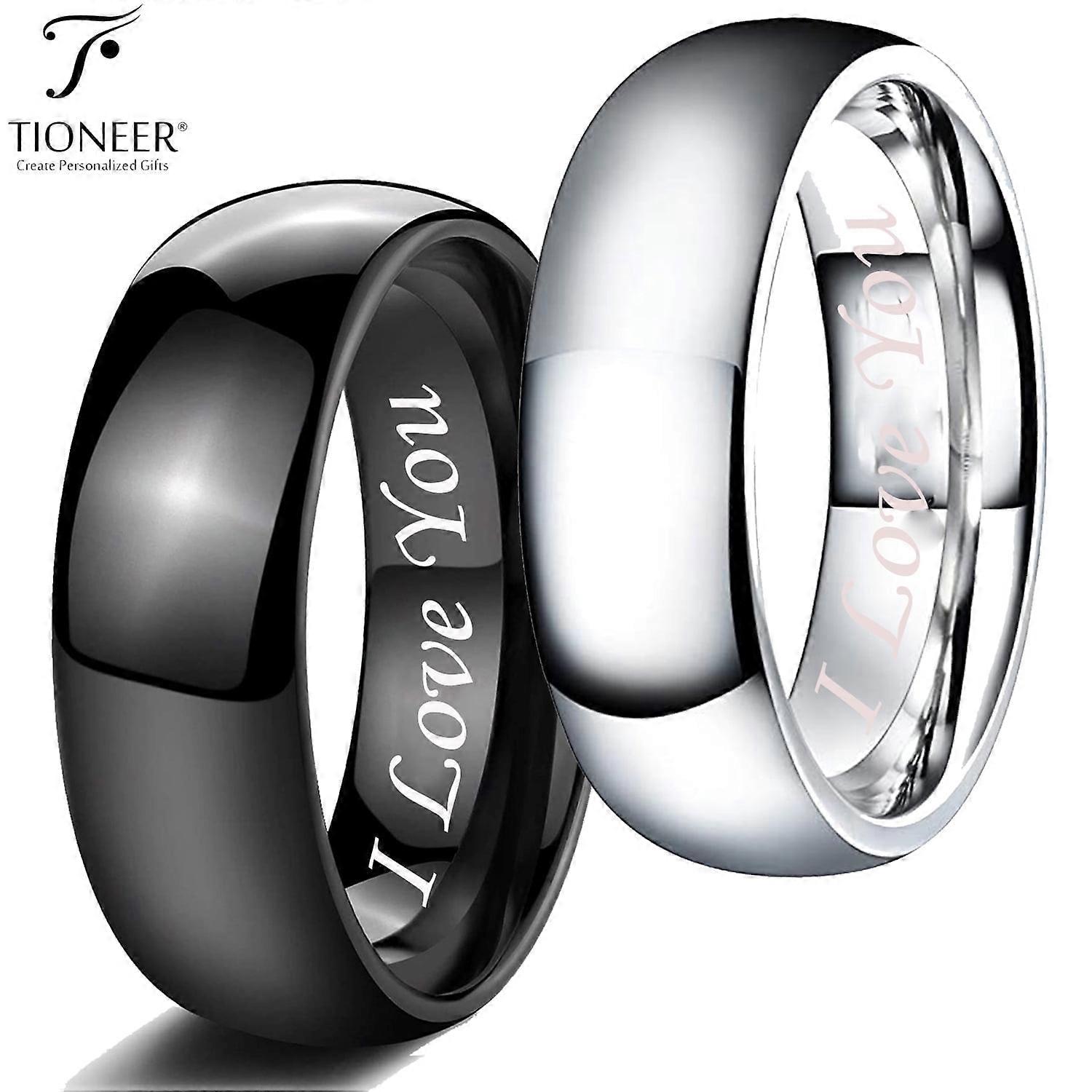 Tioneer Tungsten Carbide Classic Polished Plain Dome Wedding Band Ring I Love You Engraved 11mm