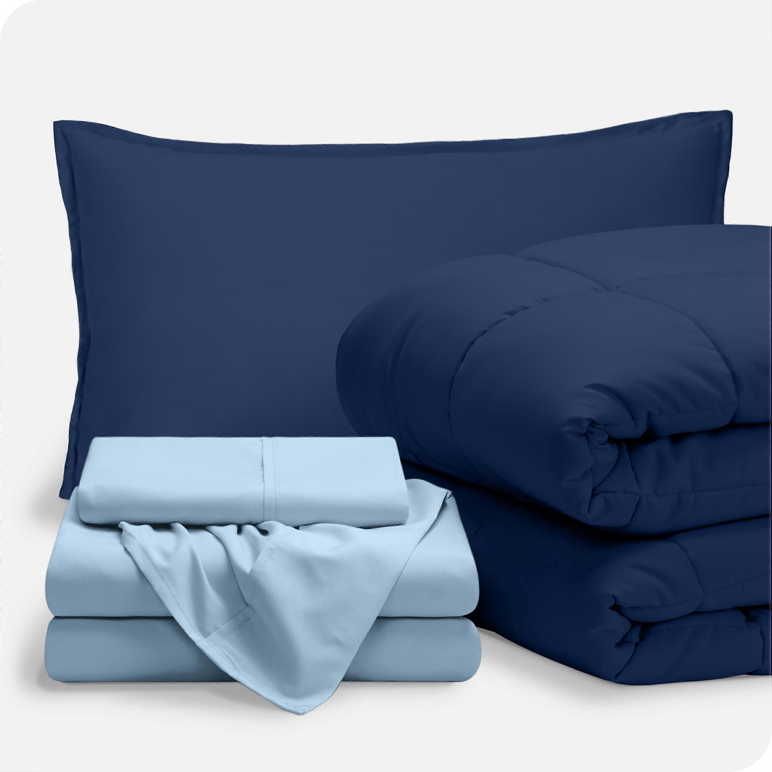 Bare Home 5-Piece Bed-in-a-Bag - Twin, Dark Blue with Light Blue Sheet Set