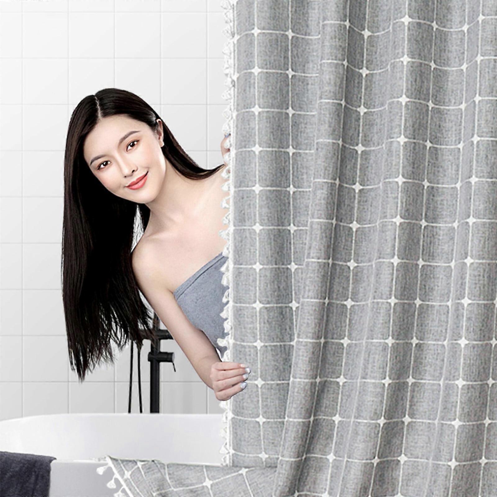 Bohemian Farmside Shower Curtain - Rustic Heavy Duty Striped Fabric Set with Tassel, Water Repellent, Vintage Country Cloth, Gray