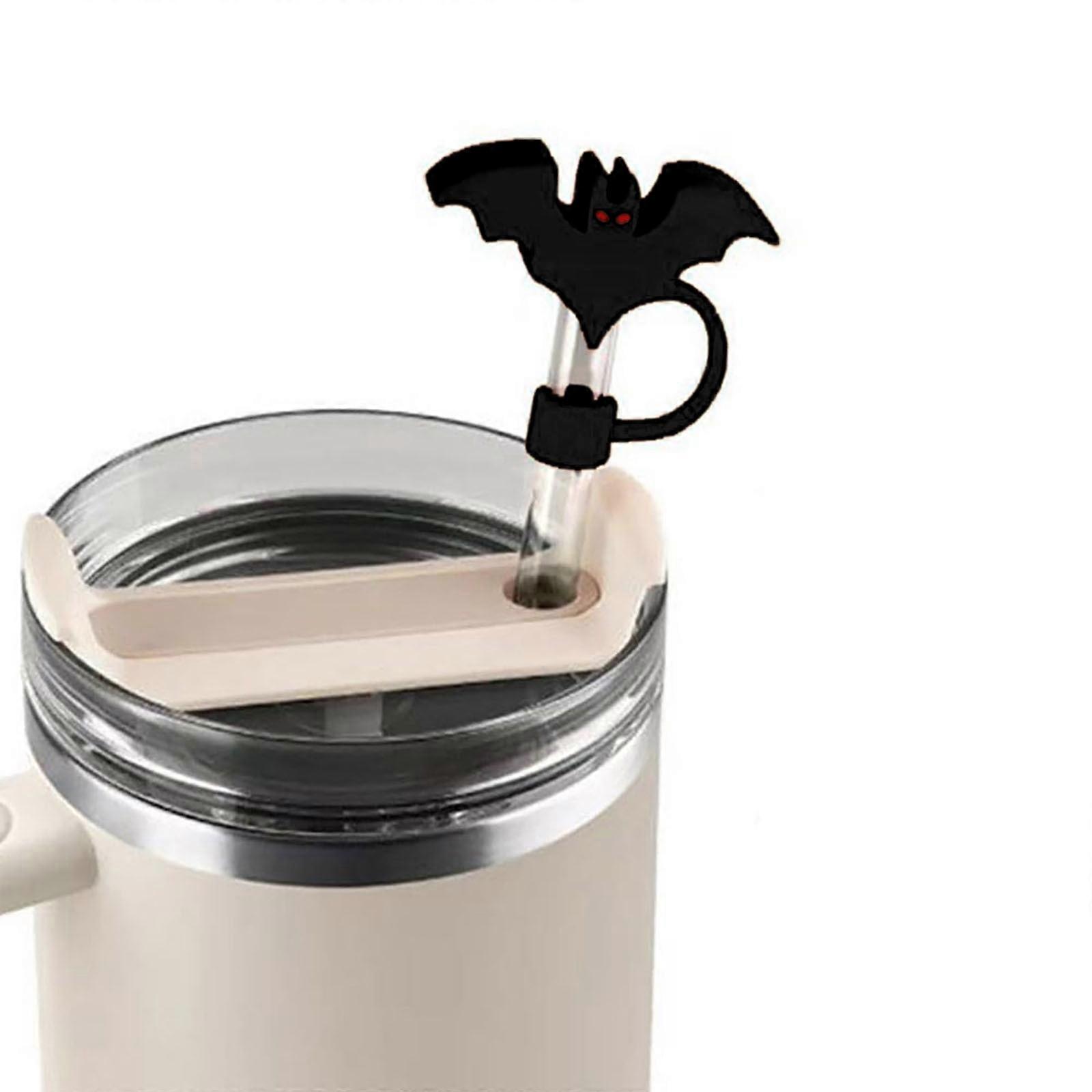Cute 3D Halloween Bat Silicone Straw Covers 10mm - Reusable, Dust-Proof Lids for Cups - Compatible with 0.4in Straws